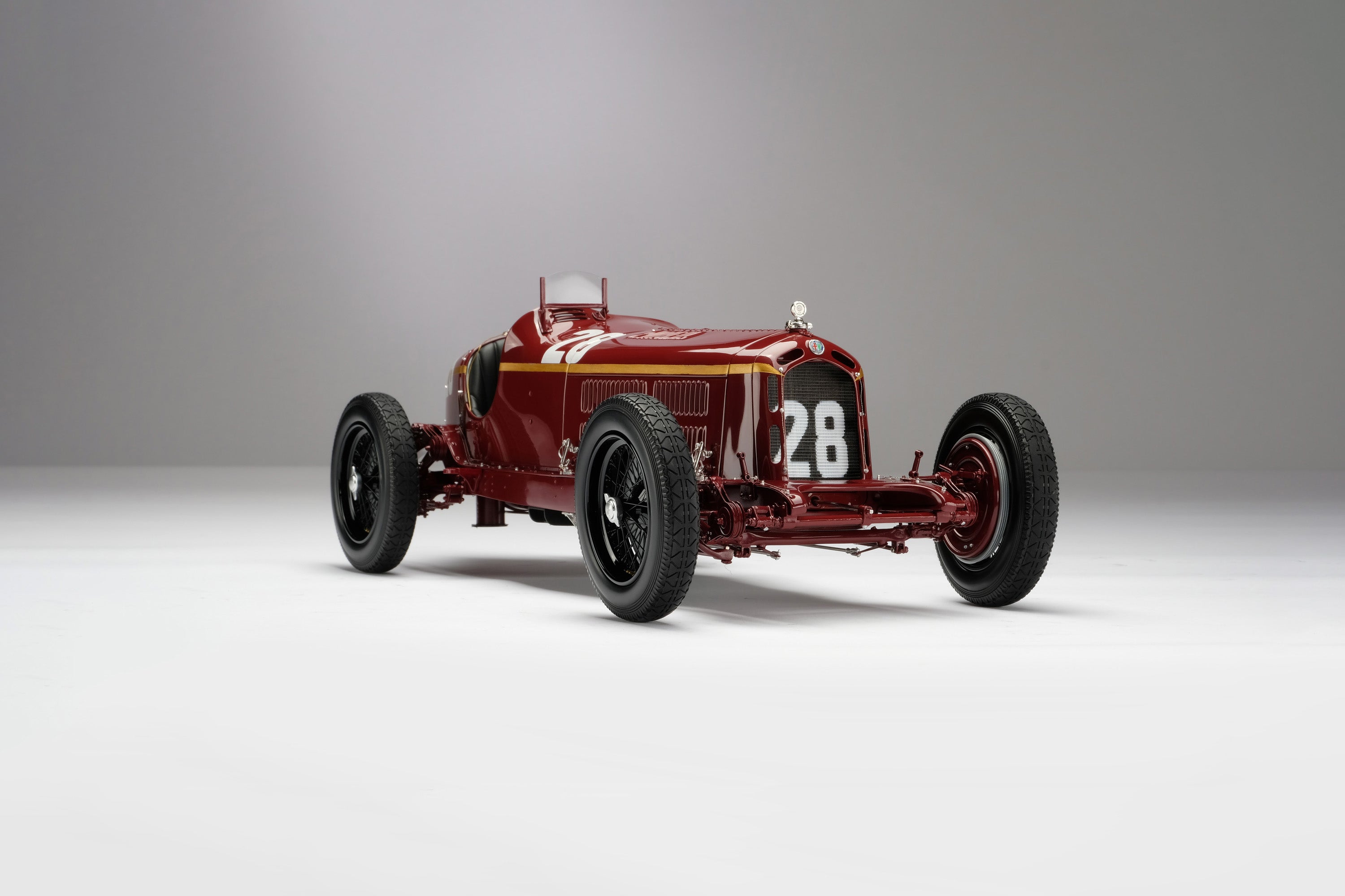 This fine 1:8 scale model is of the Alfa Romeo 8C 2300 as raced to victory by Tazio Nuvolari at the 1932 Monaco Grand Prix on the 17th of April 1932. It was the fourth running of the event, which had already gained international fame, and Alfa Romeo’s first appearance as a works team in Monaco, where they faced the teams from Bugatti and Maserati. Racing for the outfit from Portello, all in red Monzas, were the Italian trio of Nuvolari, Giuseppe Campari and Mario Umberto Borzacchini. There was a fourth car, a white Monza, for the German Rudolf Caracciola, who was not yet part of the official factory team.