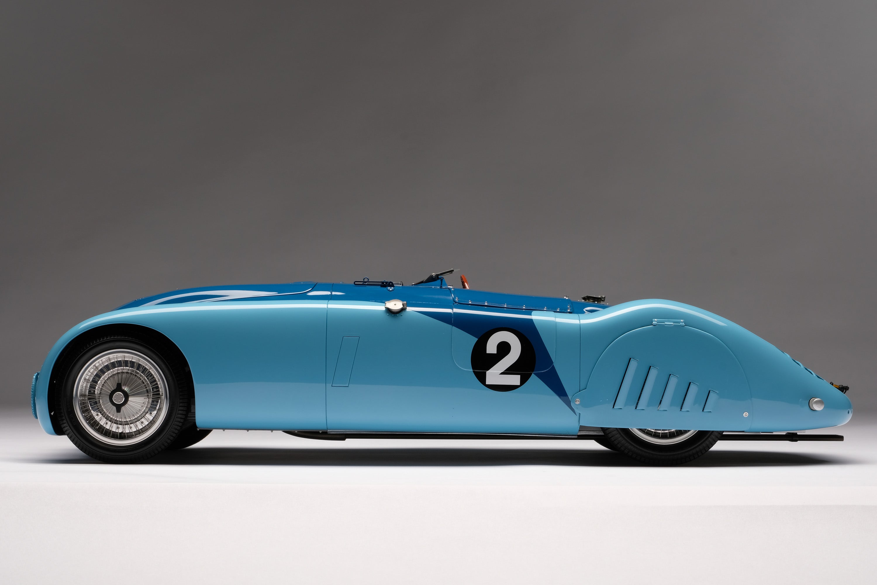 Only three Type 57 Tanks were ever produced, the first of which disappeared shortly after its introduction at the Paris Auto Salon in 1936, never to be seen again. This model is based upon the second, the famous 57S-based 57G Tank, that would go on to win the French Grand Prix later that year, piloted by Jean-Pierre Wimille and Raymond Sommer. They completed the 80 lap, 1000km race in 7:58:52.7, emerging the victors by 50.6 seconds.