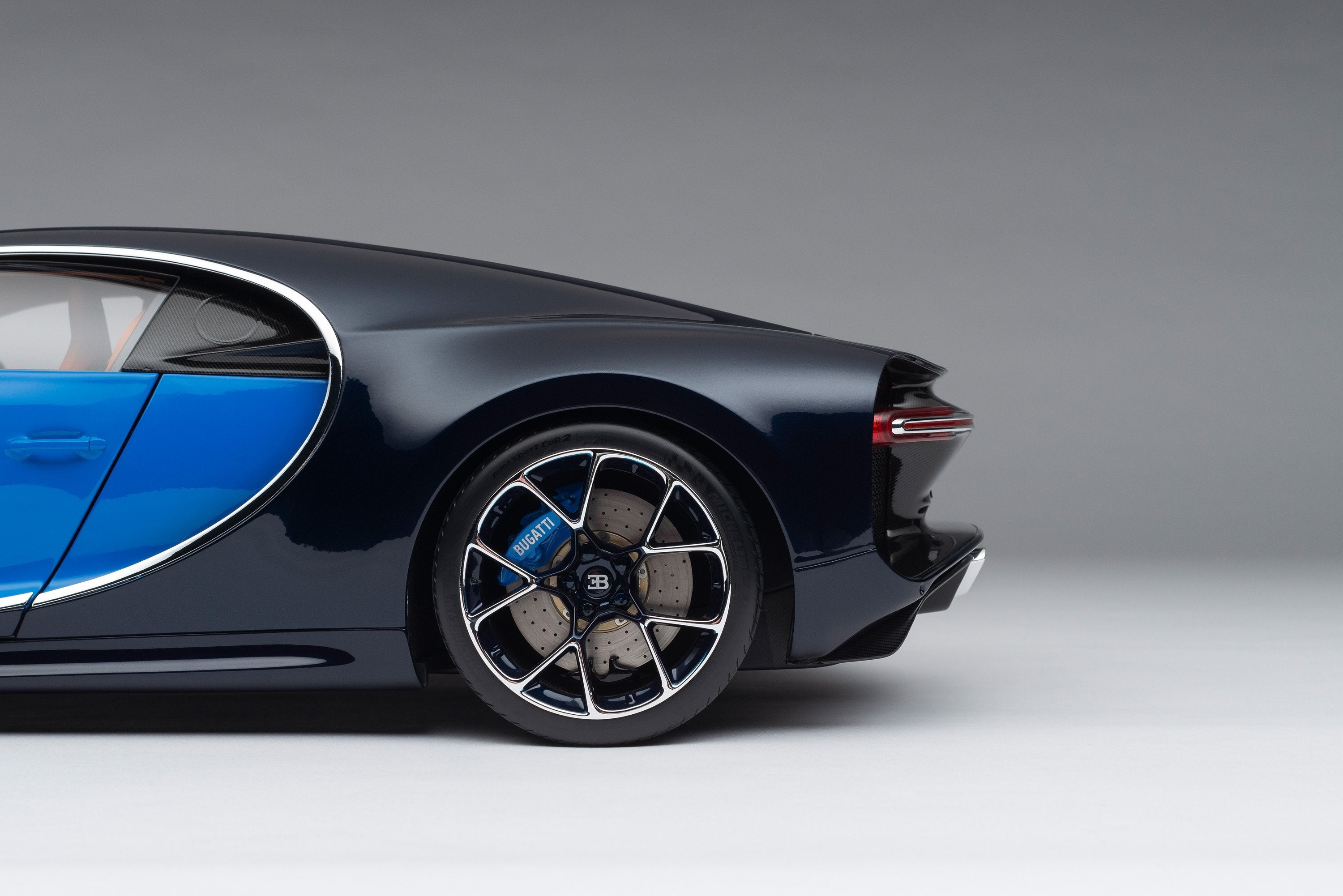This fine model of the Bugatti Chiron is as launched at the Geneva Motor Show in 2016. The model has been handcrafted and finished in our workshops with the co-operation and assistance of Bugatti regarding original finishes, materials, archive imagery and drawings. The use of original CAD and supremely accurate digital scanning of the original car has allowed us to perfectly recreate every detail at scale. Furthermore, the prototype model has undergone detailed scrutiny by the manufacturer’s engineering and design teams to ensure complete accuracy of representation.