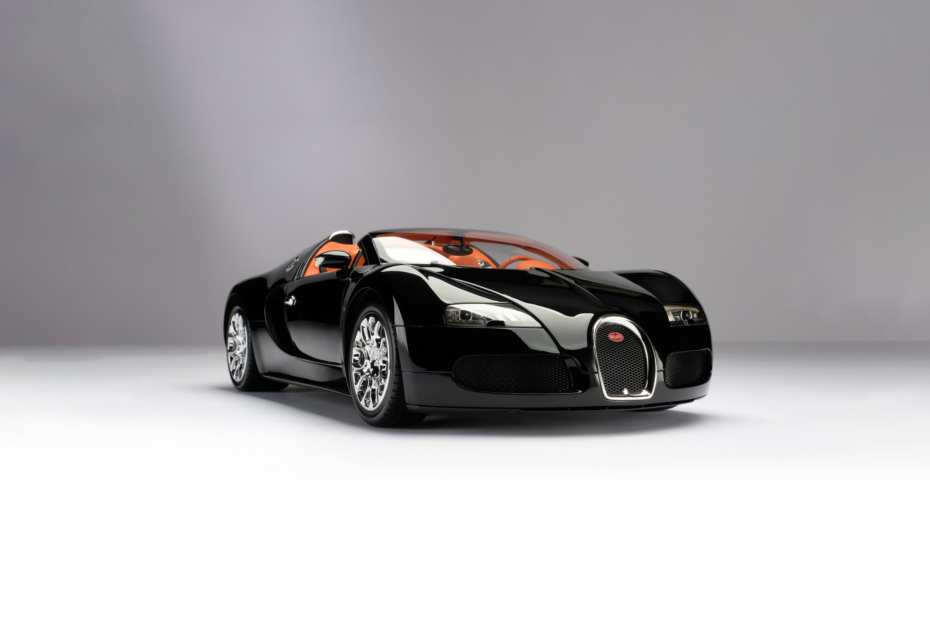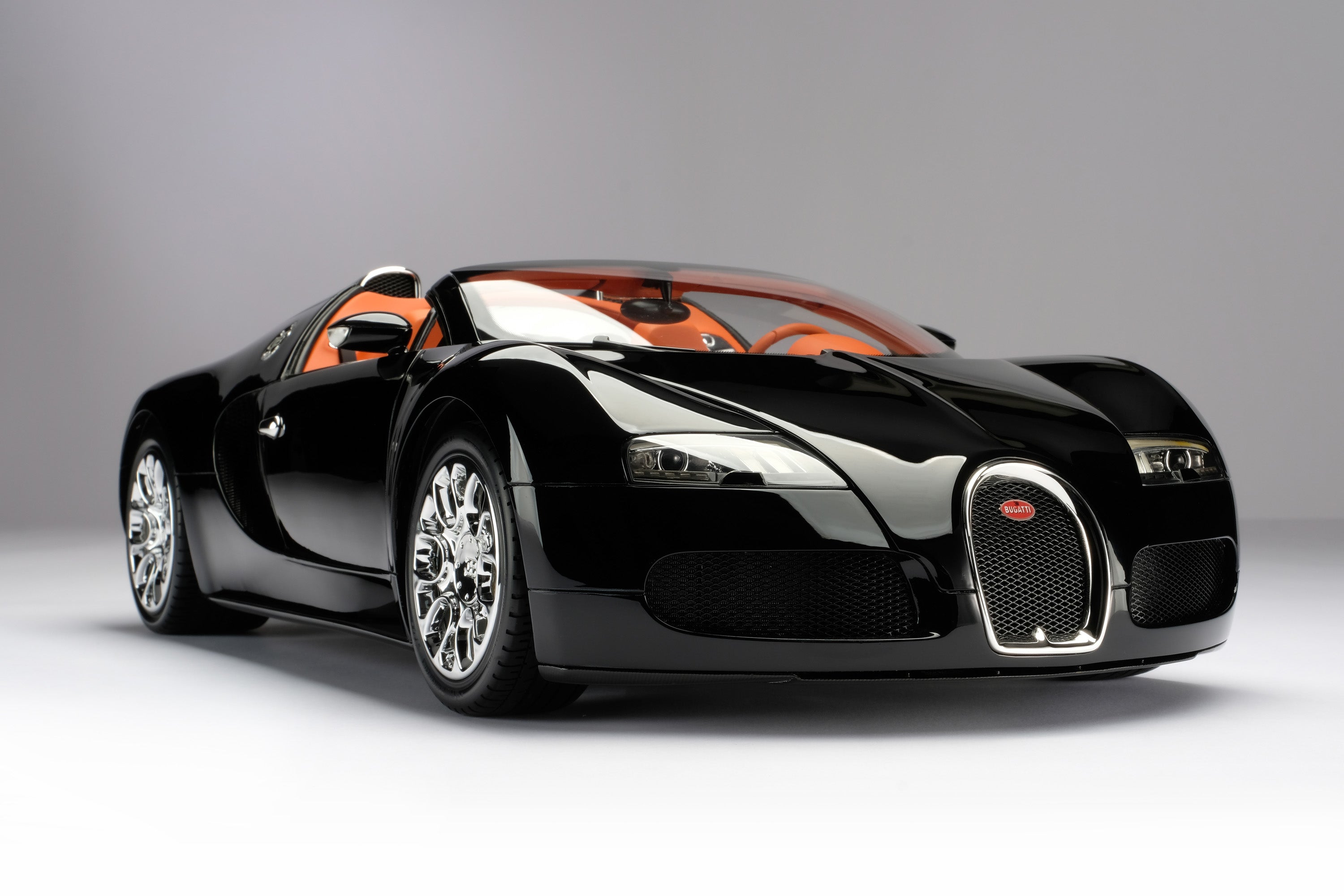 The Limited Edition Veyron Grand Sport is available in three colour schemes: white with a coffee interior, black with an orange interior or blue with a cognac interior.