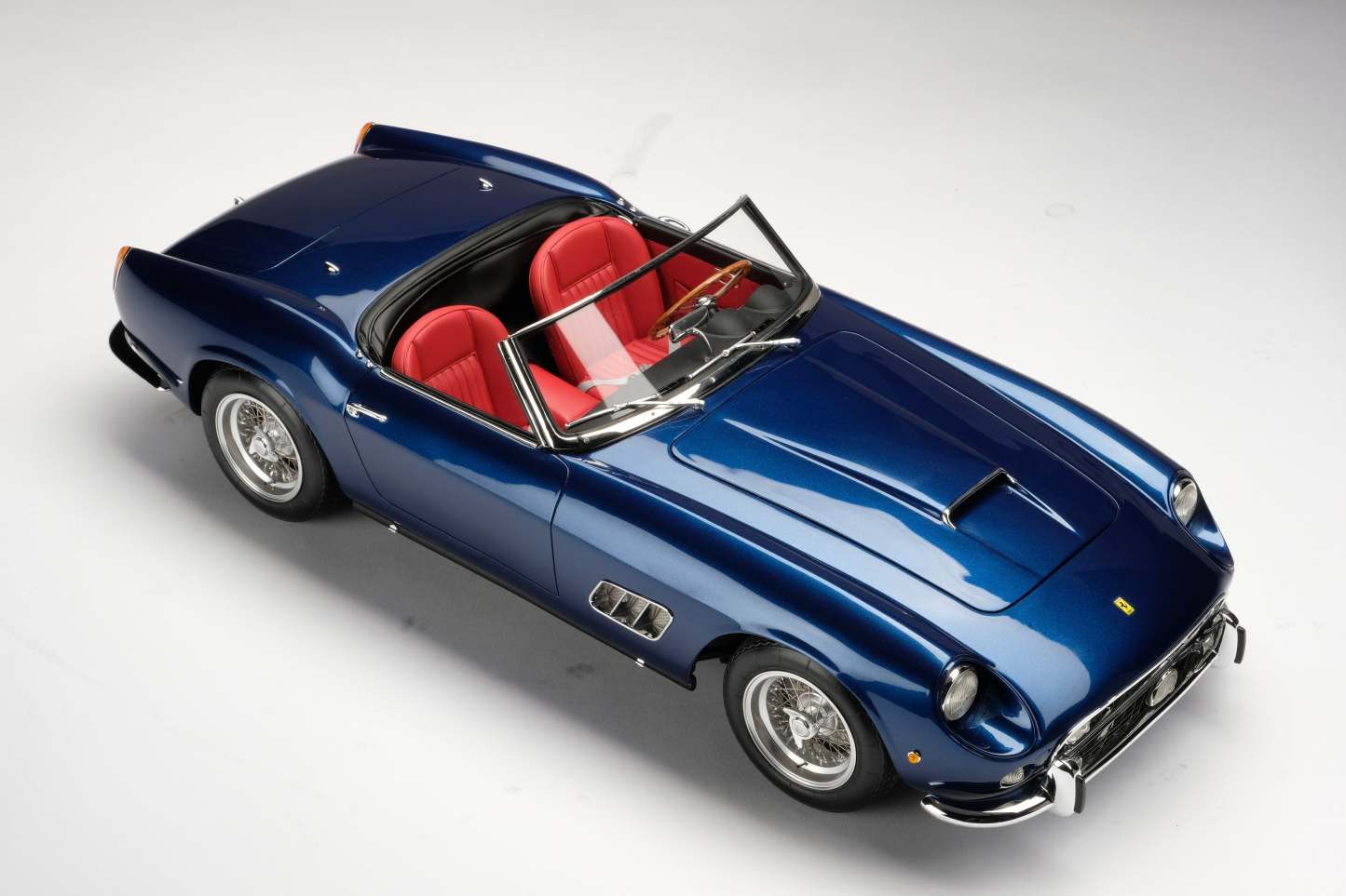 This fine 1:8 scale model of the Ferrari 250 GT California Spyder SWB has been handcrafted and finished in our workshops with the co-operation and assistance of Ferrari regarding original finishes, materials, archive imagery and drawings. The use of supremely accurate digital scanning of the original car has allowed us to perfectly recreate every detail at scale. Furthermore, it has undergone detailed scrutiny by both the engineering and design teams to ensure complete accuracy of representation. Every Amalgam 1:8 scale model is supplied in a luxury black presentation box and mounted on a carbon fibre or leather base protected by a clear acrylic dust cover. The model title, original branding and edition number are displayed on polished stainless steel plaques mounted at the front end of the base.