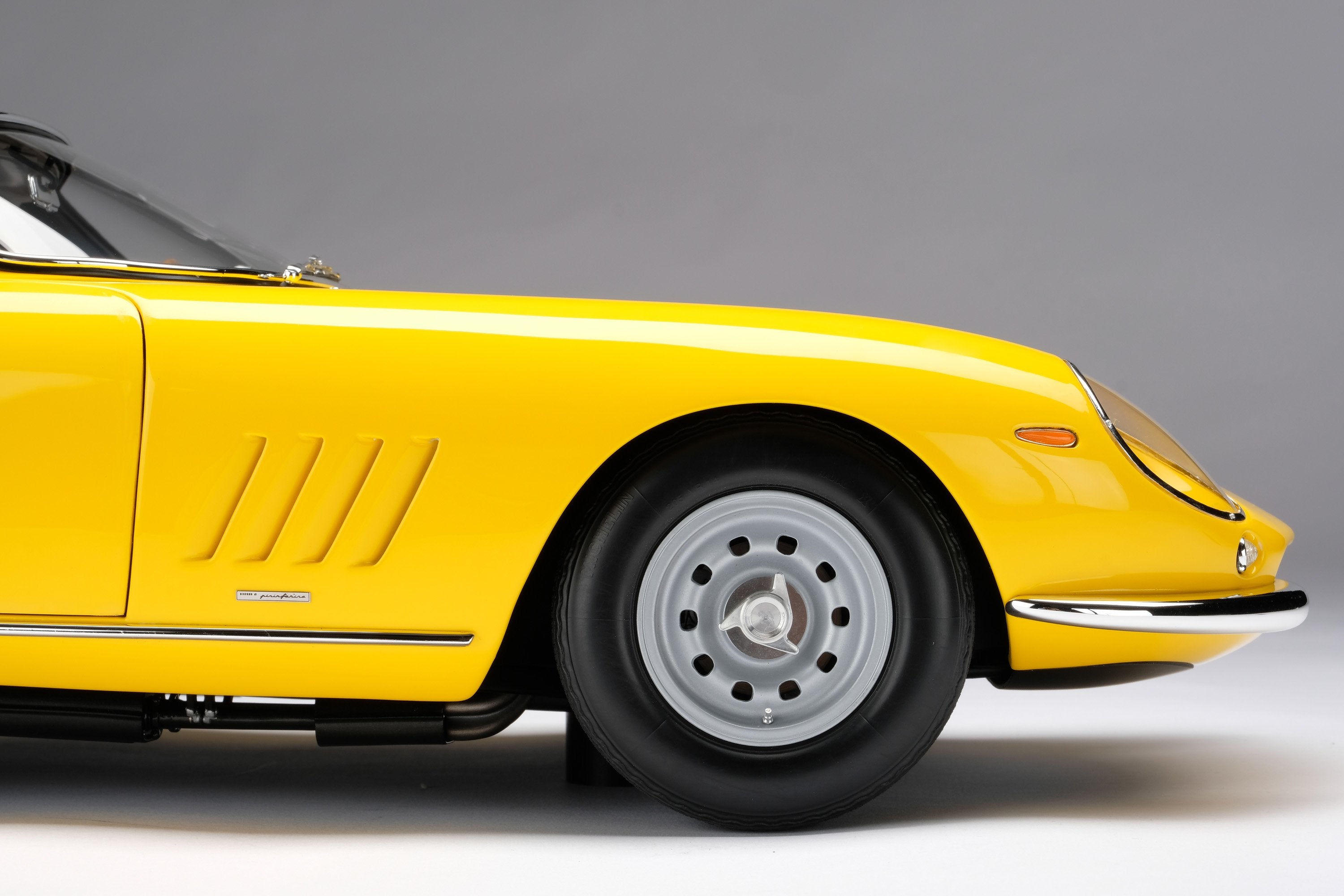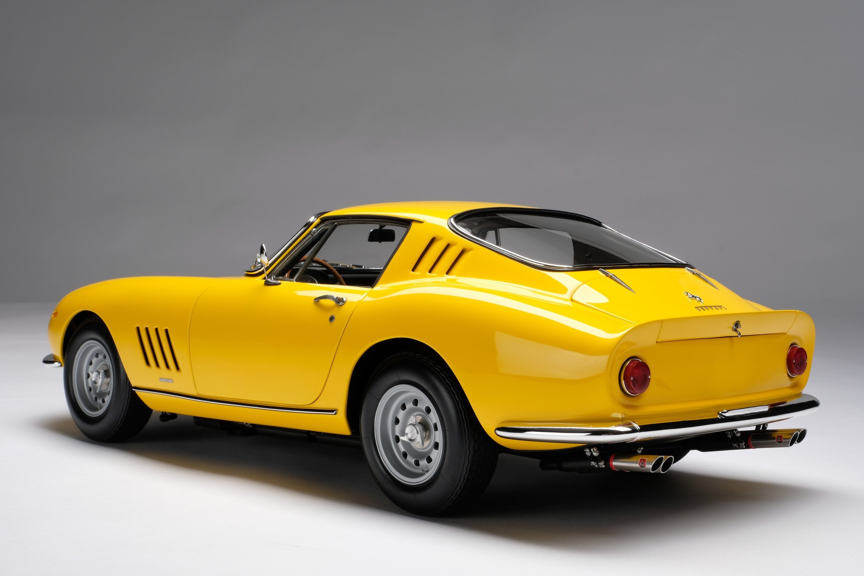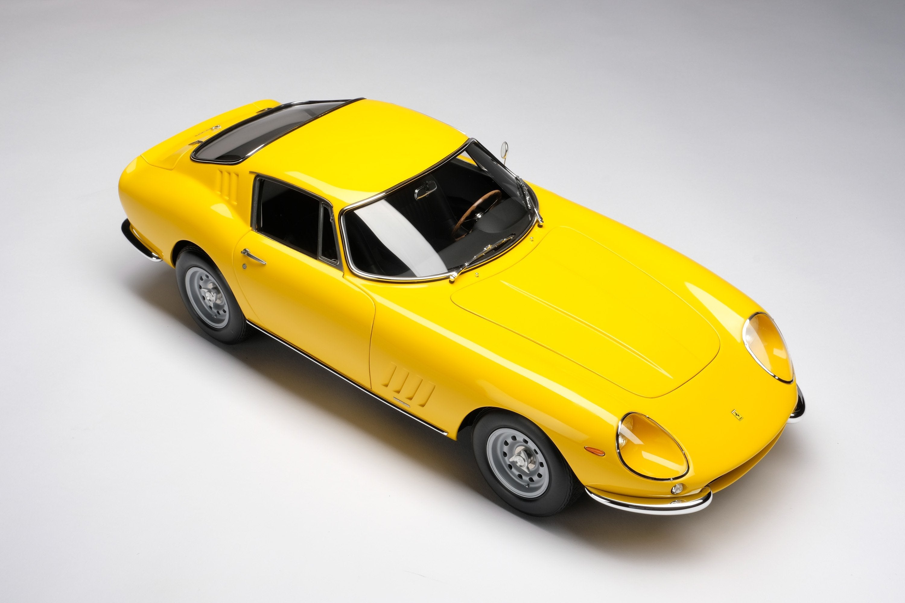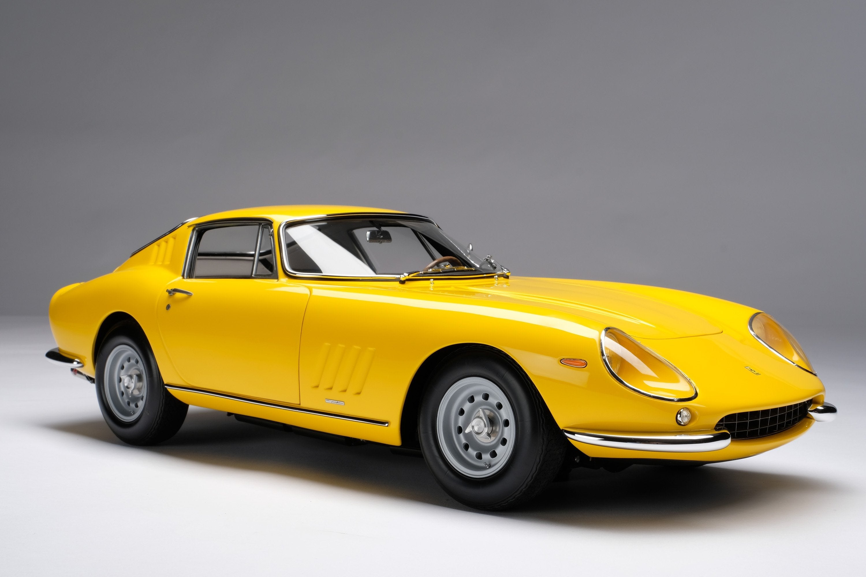 This fine 1:8 scale model is of the Ferrari 275 GTB/4 as revealed at the Paris Motor Show in October in 1966. It has been handcrafted and finished in our workshops with the co-operation and assistance of Ferrari regarding original finishes, materials, archive imagery and drawings. The use of supremely accurate digital scanning of the original car has allowed us to perfectly recreate every detail at scale. Furthermore, it has undergone detailed scrutiny by both Ferrari’s engineering and design teams to ensure complete accuracy of representation.