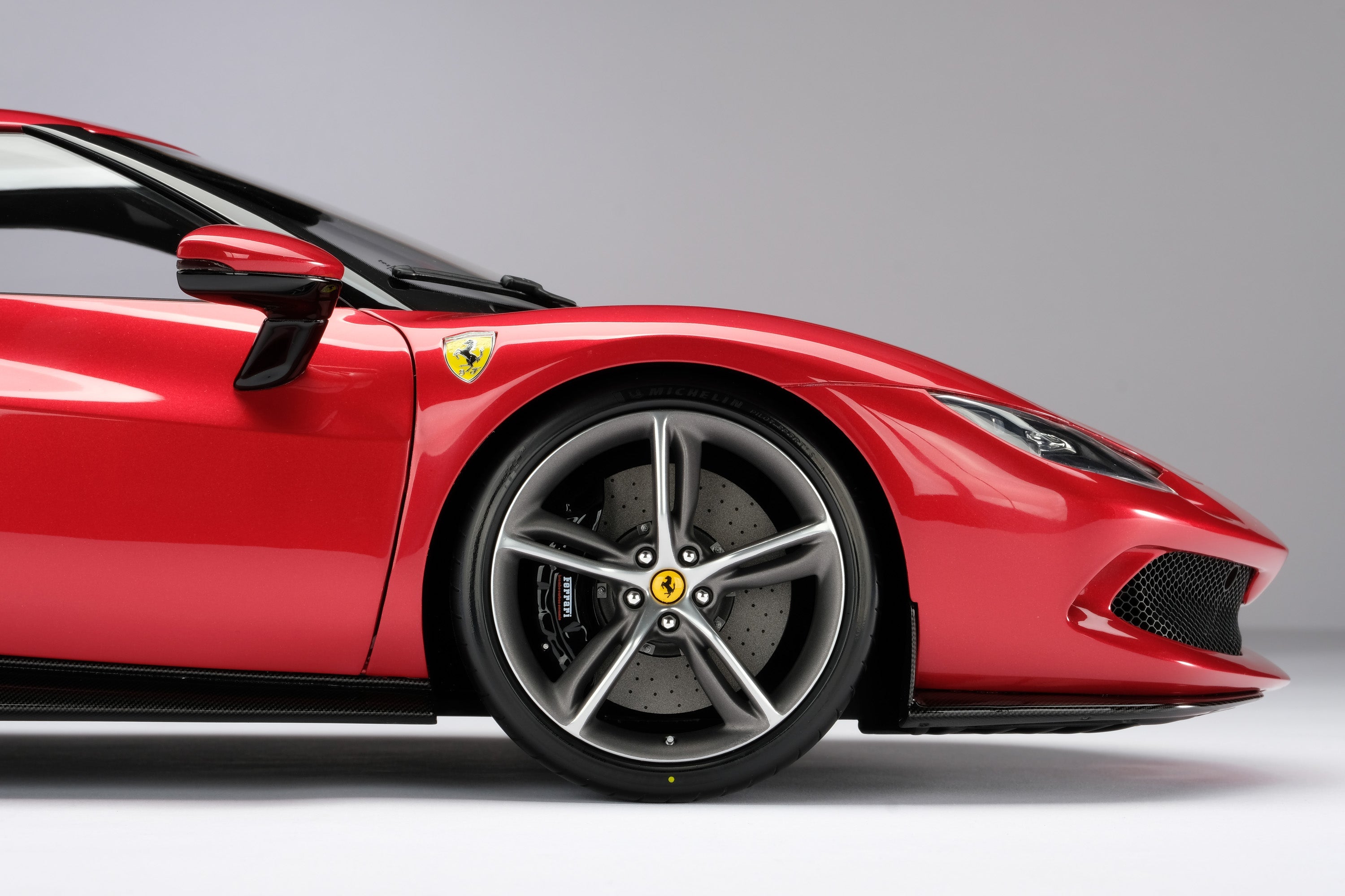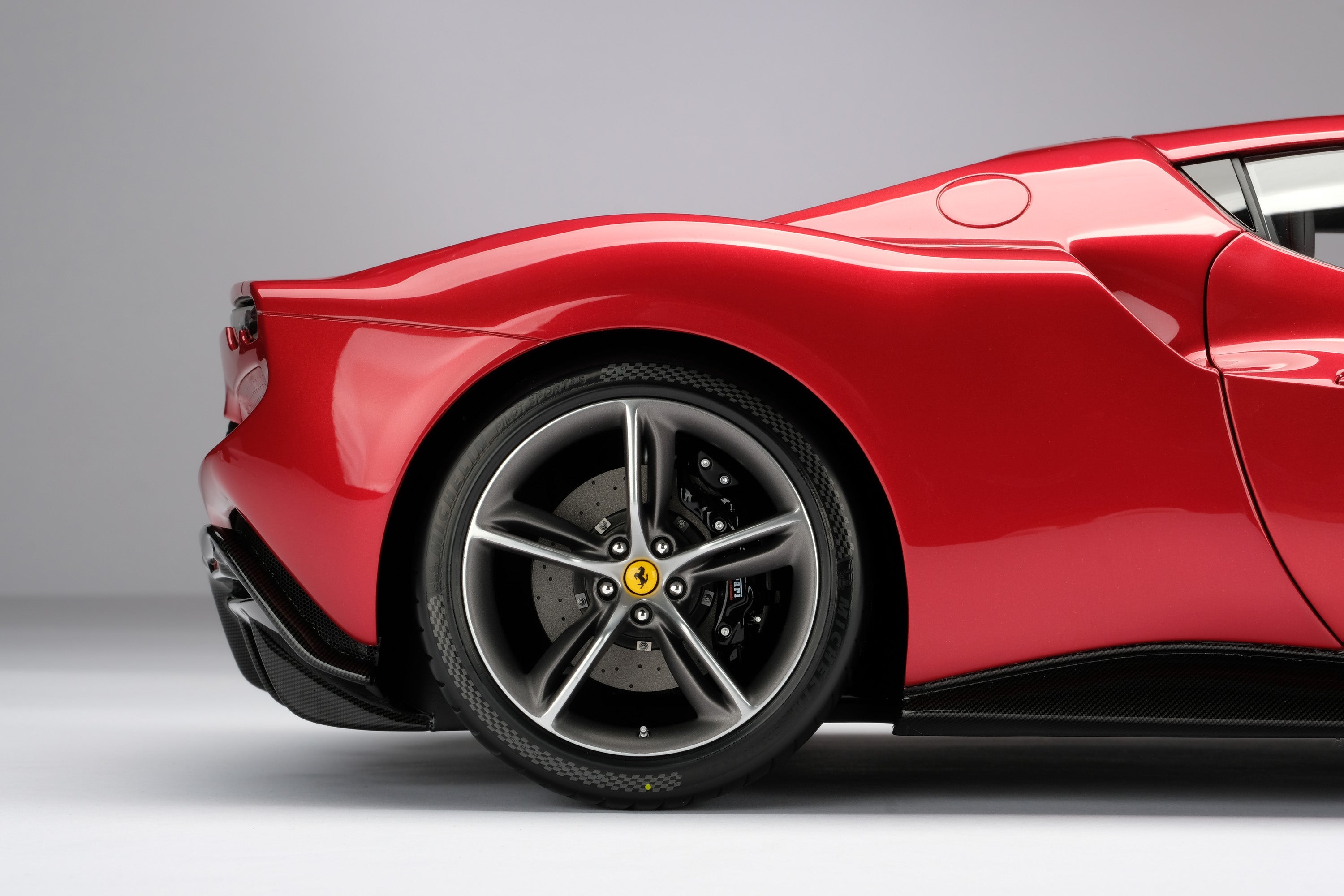 This fine scale model of the 296 GTB has been handcrafted and finished in our workshops with the co-operation and assistance of Ferrari regarding original finishes, materials, archive imagery and drawings. The use of original CAD has allowed us to perfectly recreate every detail at scale. Furthermore, the prototype model has undergone detailed scrutiny by the Ferrari's engineering and design teams to ensure complete accuracy of representation.