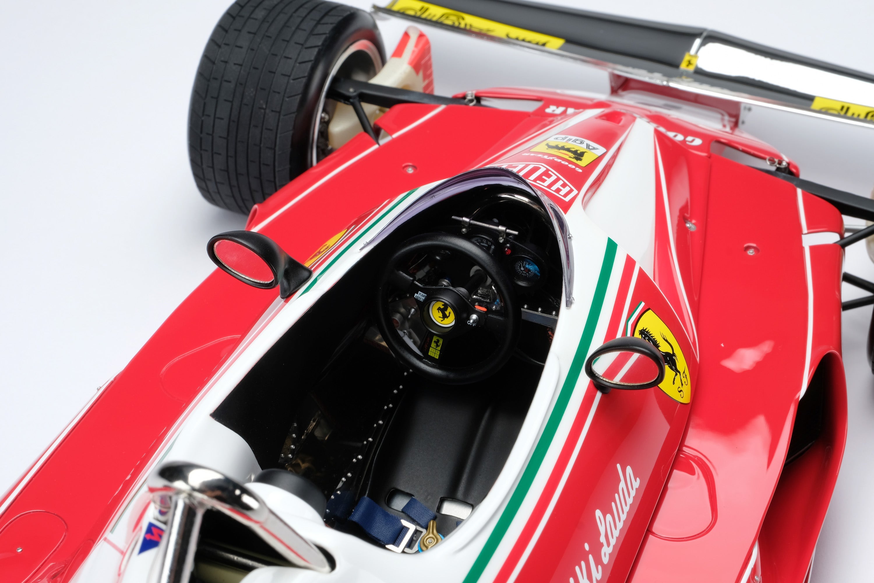 The second iteration of the hugely successful 312 T chassis, the 312 T2 was Scuderia Ferrari’s entry for the majority of the 1976 FIA Formula 1 World Championship season. Piloted by reigning World Champion Niki Lauda, Swiss racer Clay Regazzoni and for a single race at the Italian Grand Prix, Argentine Carlos Reutemann, the 312 T2 played a large role in one of the most legendary duels in Formula 1 history: Lauda versus James Hunt.