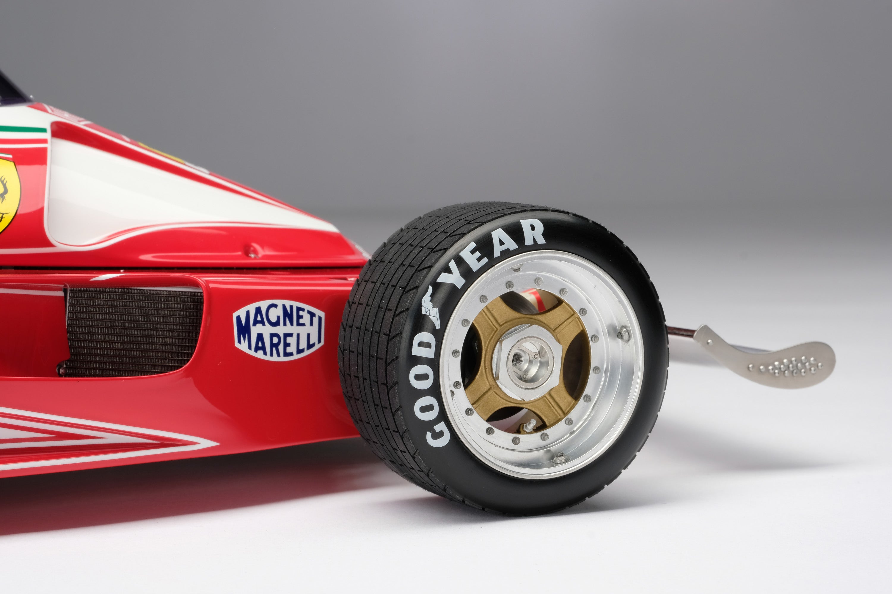This fine 1:8 scale model of the Ferrari 312 T2 has been handcrafted and finished in our workshops with the co-operation and assistance of Ferrari regarding original finishes, materials, archive imagery and drawings. The use of supremely accurate digital scanning of the original car has allowed us to perfectly recreate every detail at scale. Furthermore, it has undergone detailed scrutiny by both engineering and design teams to ensure complete accuracy of representation. Every Amalgam 1:8 scale model is supplied in a luxury black presentation box and mounted on a carbon fibre or leather base protected by a clear acrylic dust cover. The model title, original branding and edition number are displayed on polished stainless steel plaques mounted at the front end of the base.