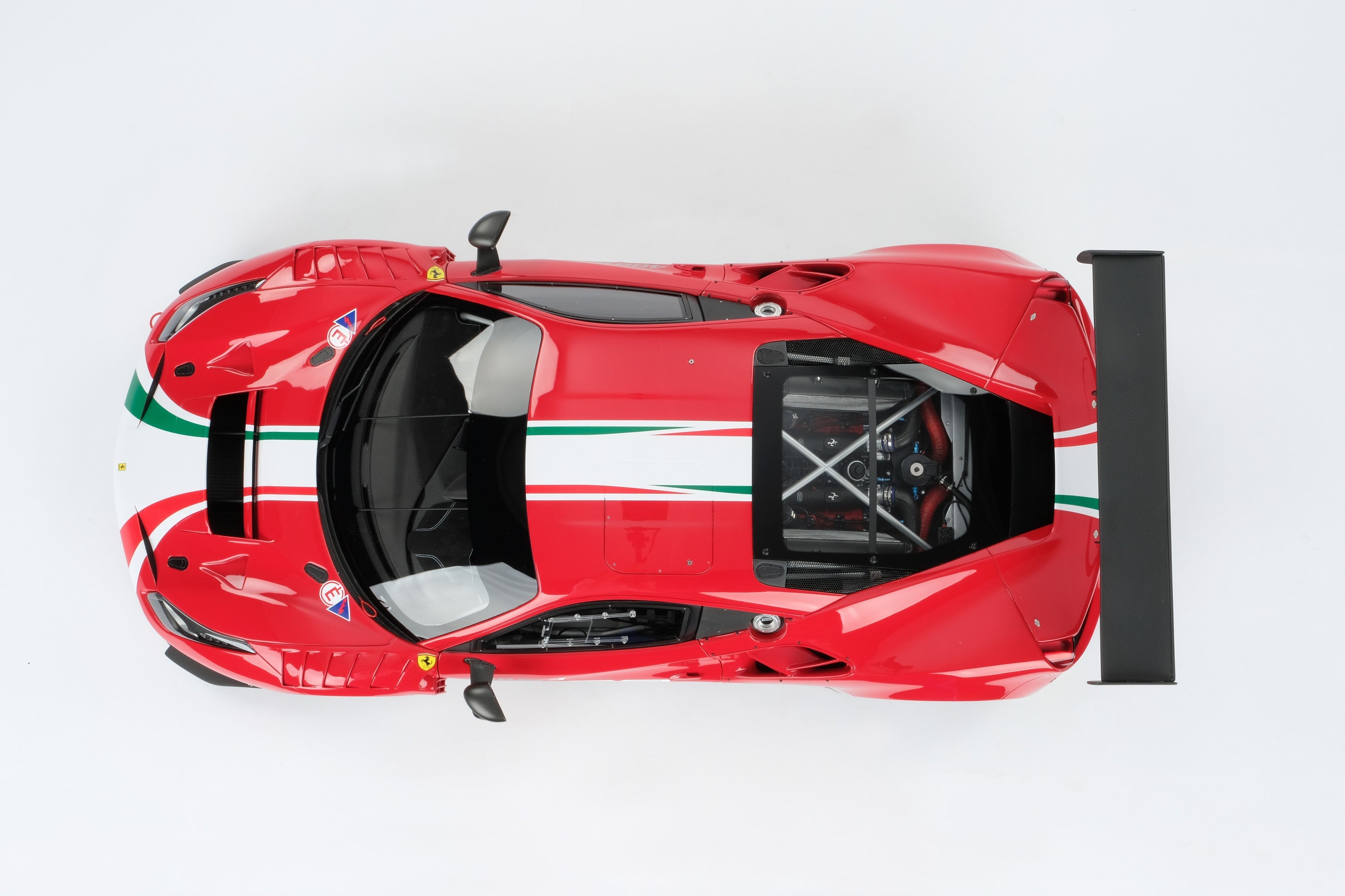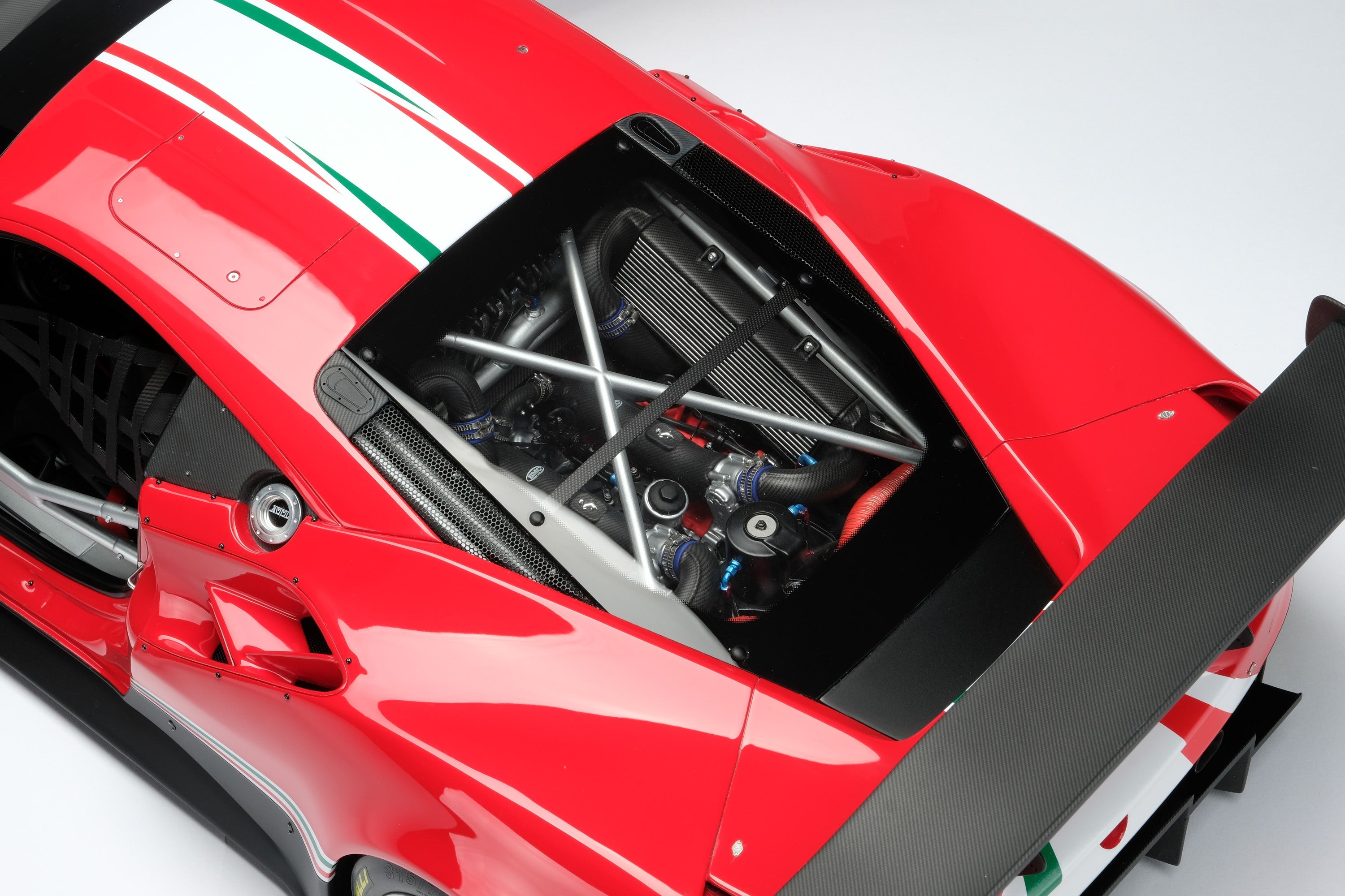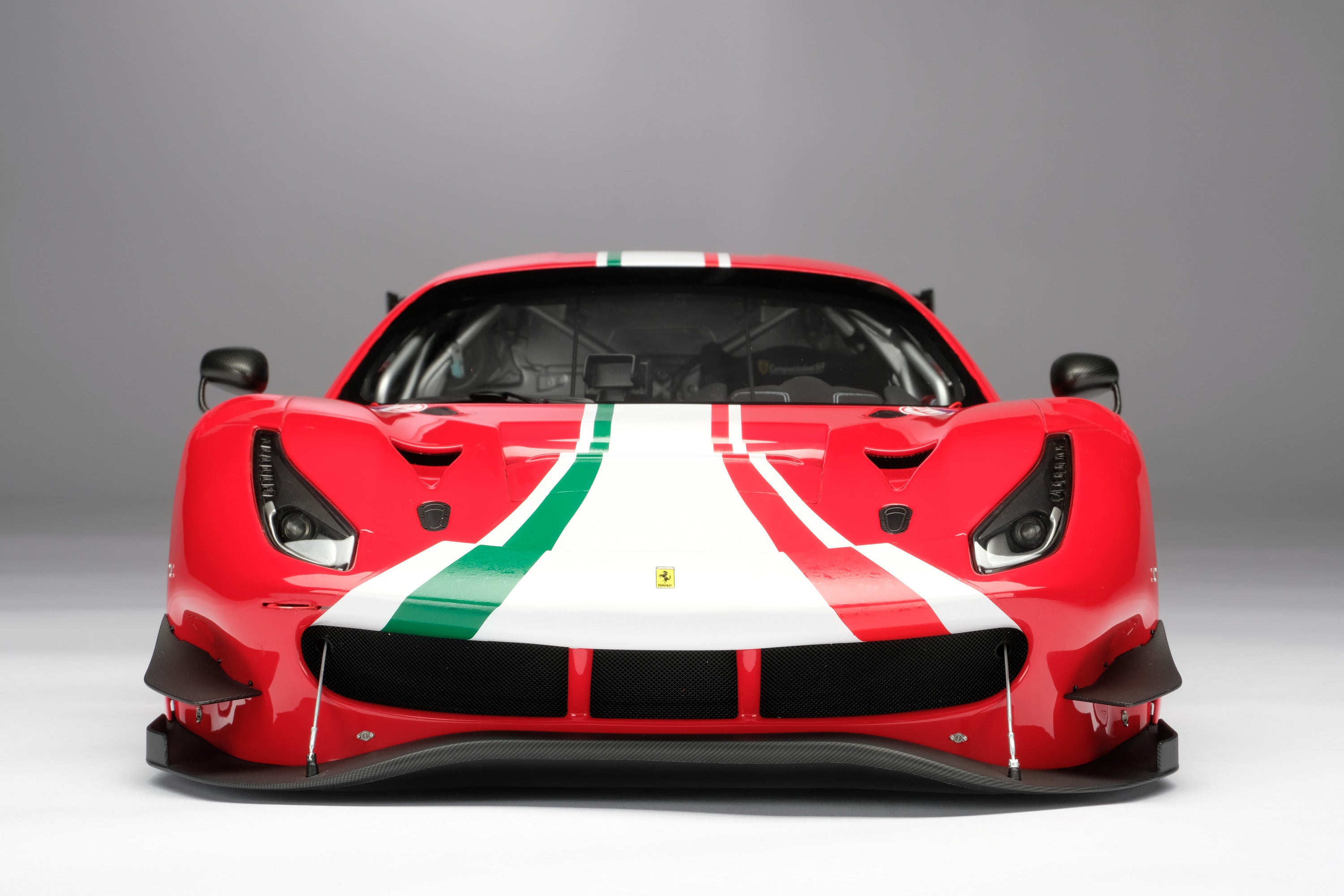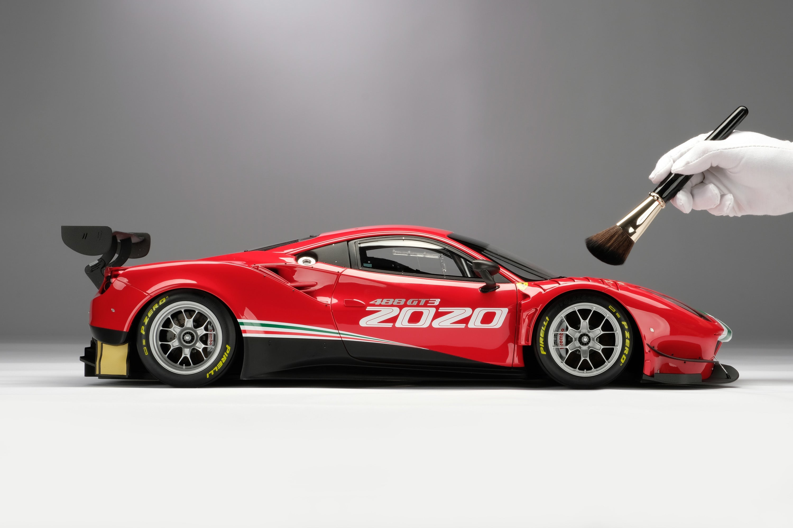 These fine 1:8 scale models of the Ferrari 488 GT3, as well as its 2018 and 2020 Evo variants, have all been handcrafted and finished in our workshops with the co-operation and assistance of Scuderia Ferrari regarding original finishes, materials, archive imagery and drawings. The use of supremely accurate CAD data of the car, provided to us by the team, has allowed us to perfectly recreate every detail at scale. Furthermore, it has undergone detailed scrutiny by both engineering and design teams to ensure complete accuracy of representation.