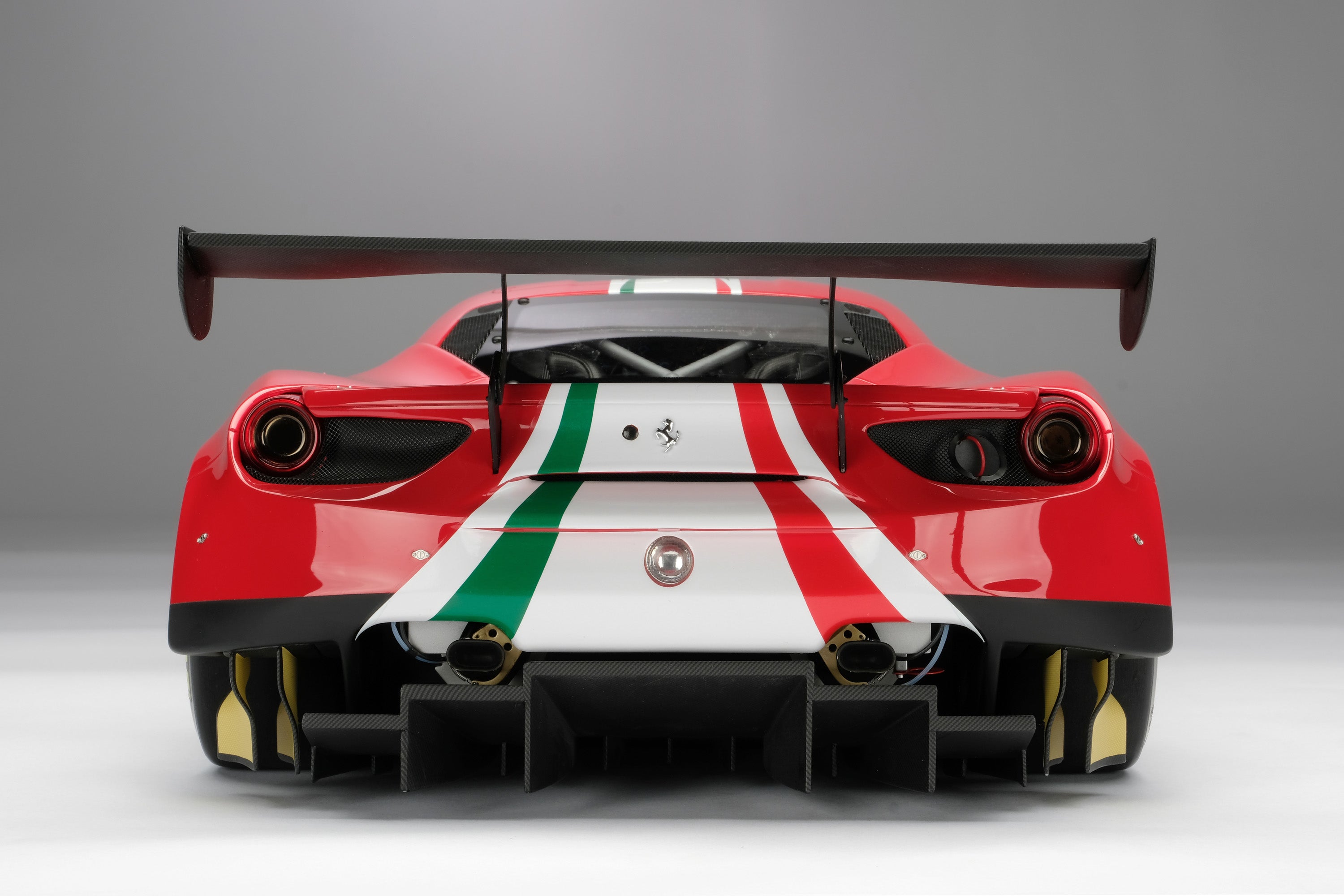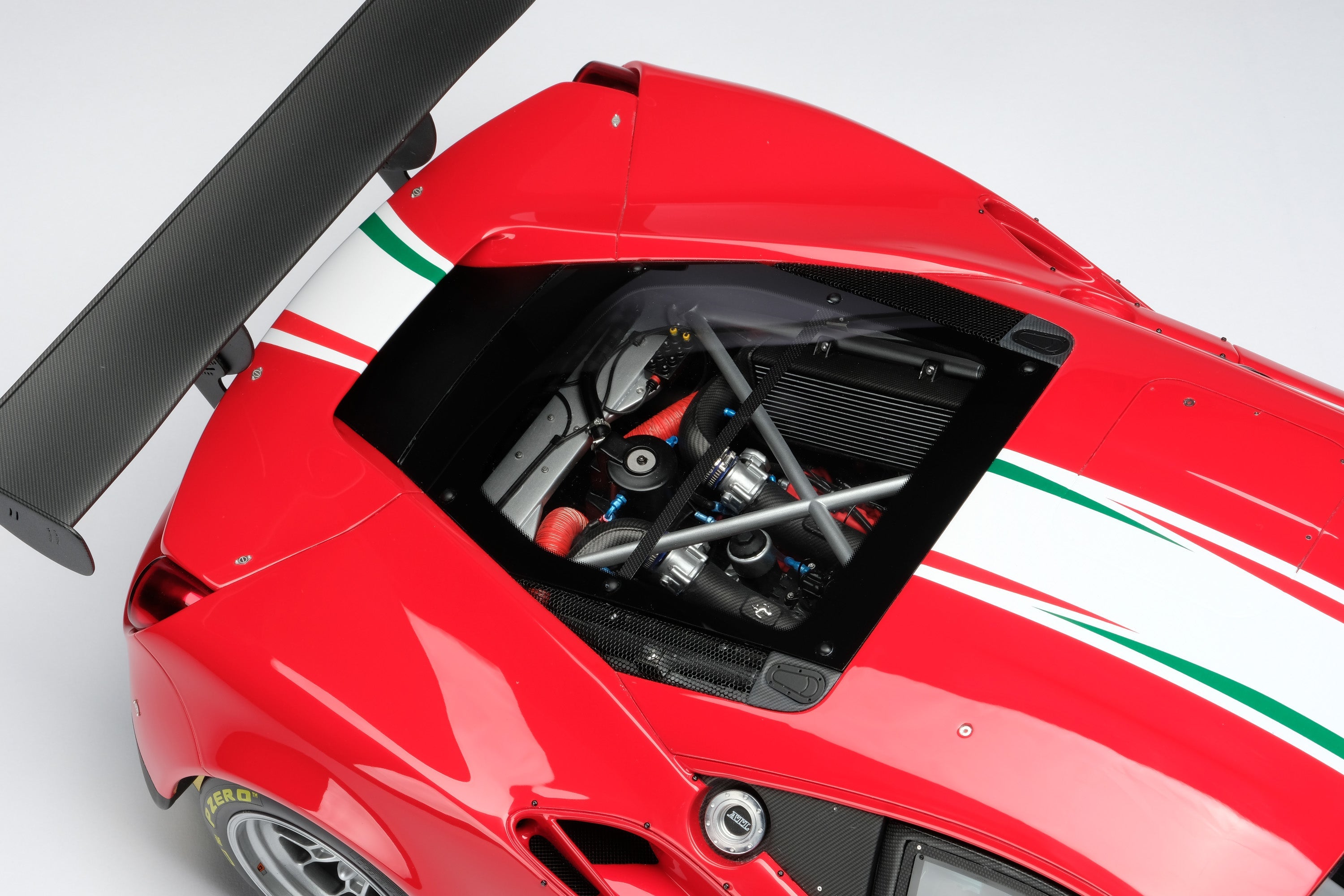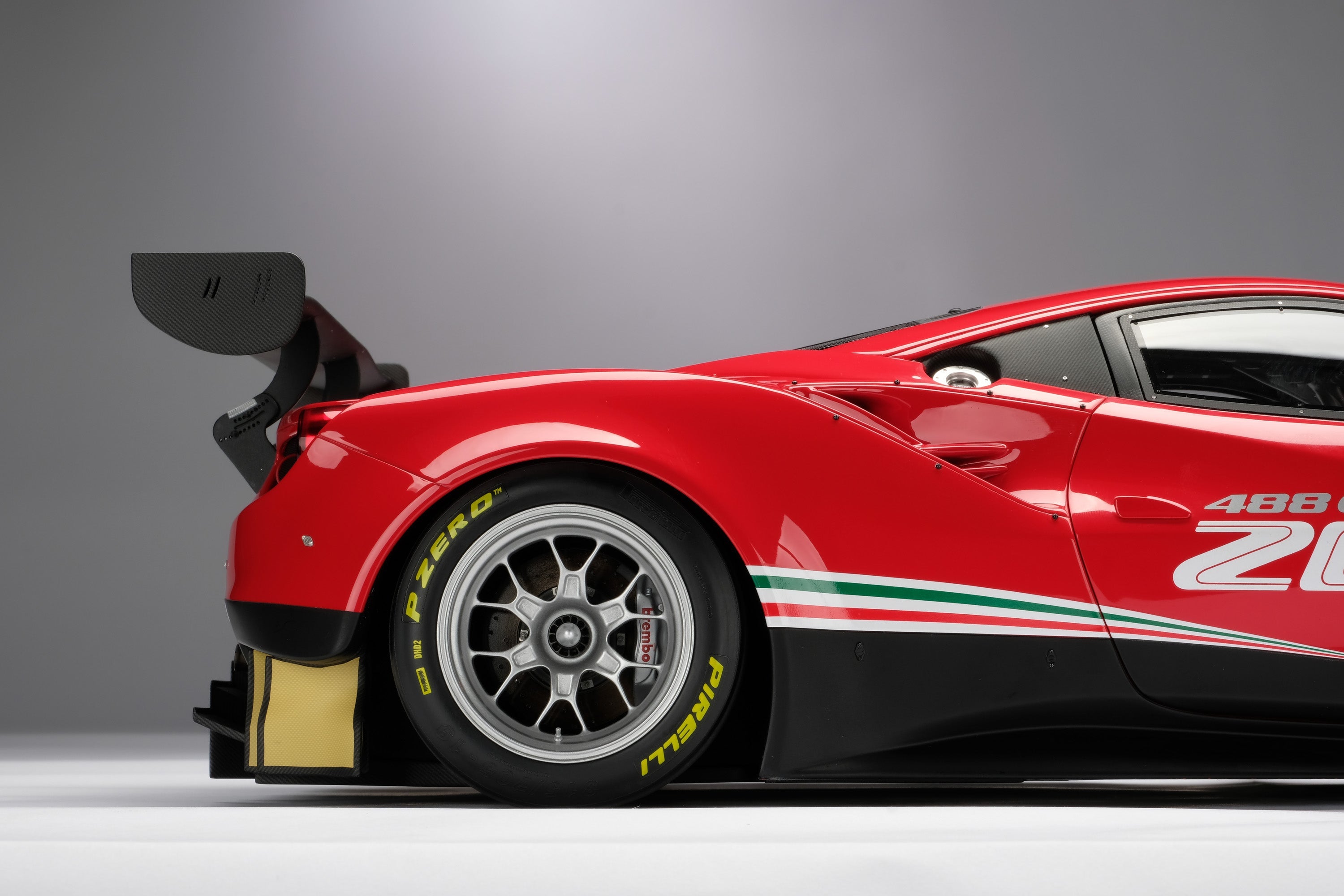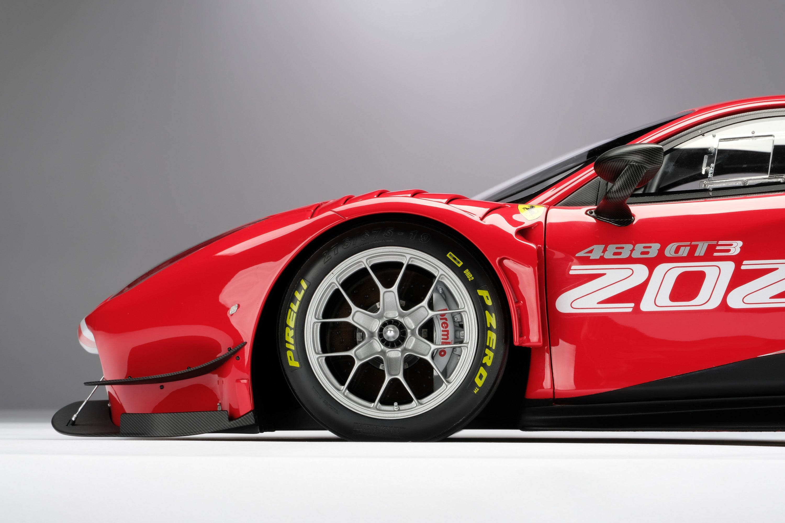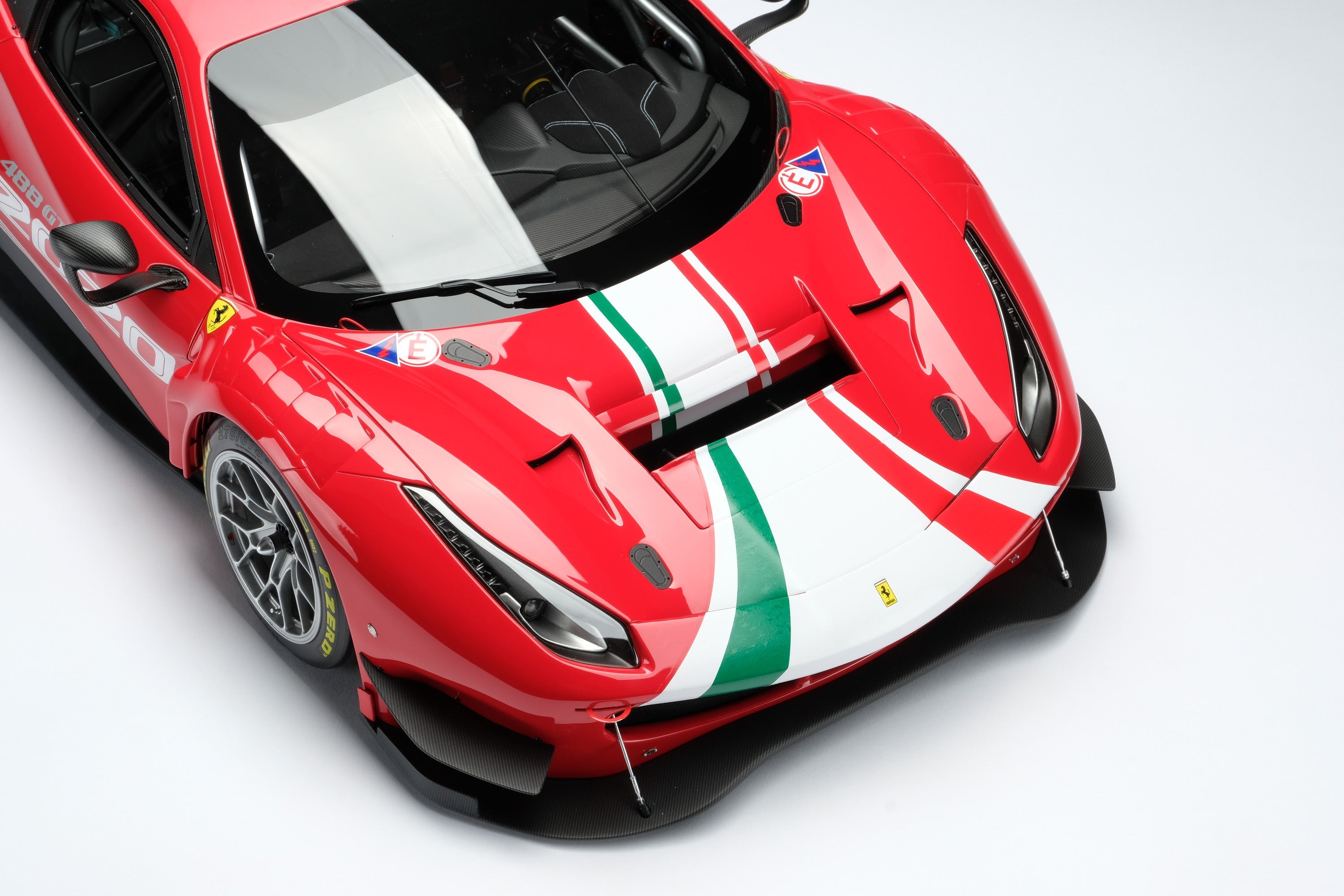 These fine 1:8 scale models of the Ferrari 488 GT3, as well as its 2018 and 2020 Evo variants, have all been handcrafted and finished in our workshops with the co-operation and assistance of Scuderia Ferrari regarding original finishes, materials, archive imagery and drawings. The use of supremely accurate CAD data of the car, provided to us by the team, has allowed us to perfectly recreate every detail at scale. Furthermore, it has undergone detailed scrutiny by both engineering and design teams to ensure complete accuracy of representation.