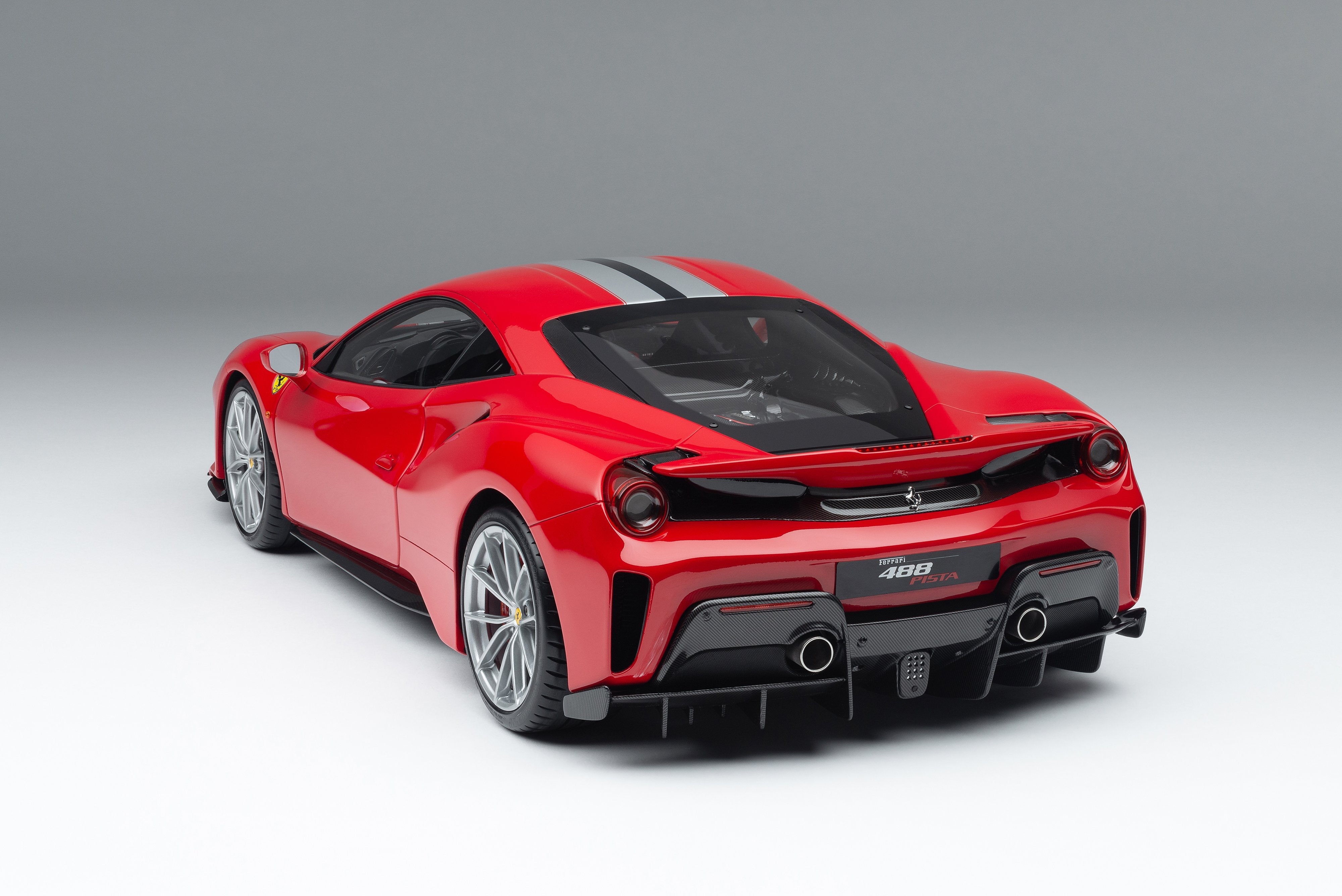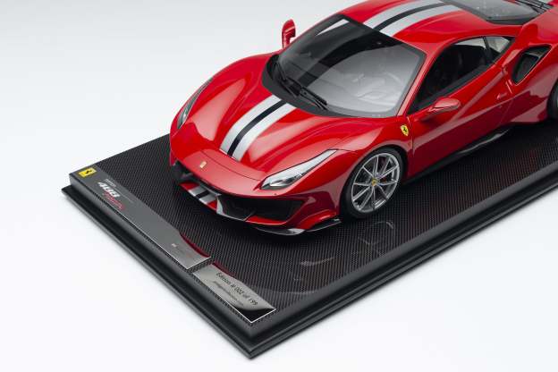 This fine 1:8 scale model of the Ferrari 488 Pista has been handcrafted and finished in our workshops with the co-operation and assistance of Ferrari regarding original finishes, materials, archive imagery and drawings. The use of supremely accurate digital scanning of the original car has allowed us to perfectly recreate every detail at scale. Furthermore, it has undergone detailed scrutiny by both engineering and design teams to ensure complete accuracy of representation.
