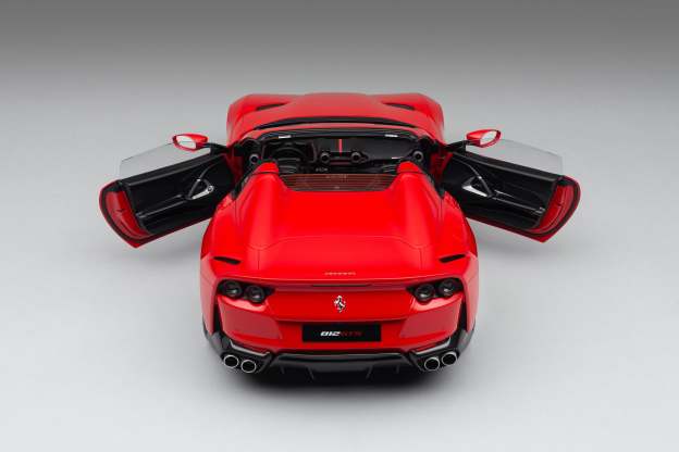 This fine 1:8 scale model of the Ferrari 812 GTS has been handcrafted and finished in our workshops with the co-operation and assistance of Ferrari regarding original finishes, materials, archive imagery and drawings. The use of original CAD and supremely accurate digital scanning of the original car has allowed us to perfectly recreate every detail at scale. Furthermore, the prototype model has undergone detailed scrutiny by the manufacturer’s engineering and design teams to ensure complete accuracy of representation.