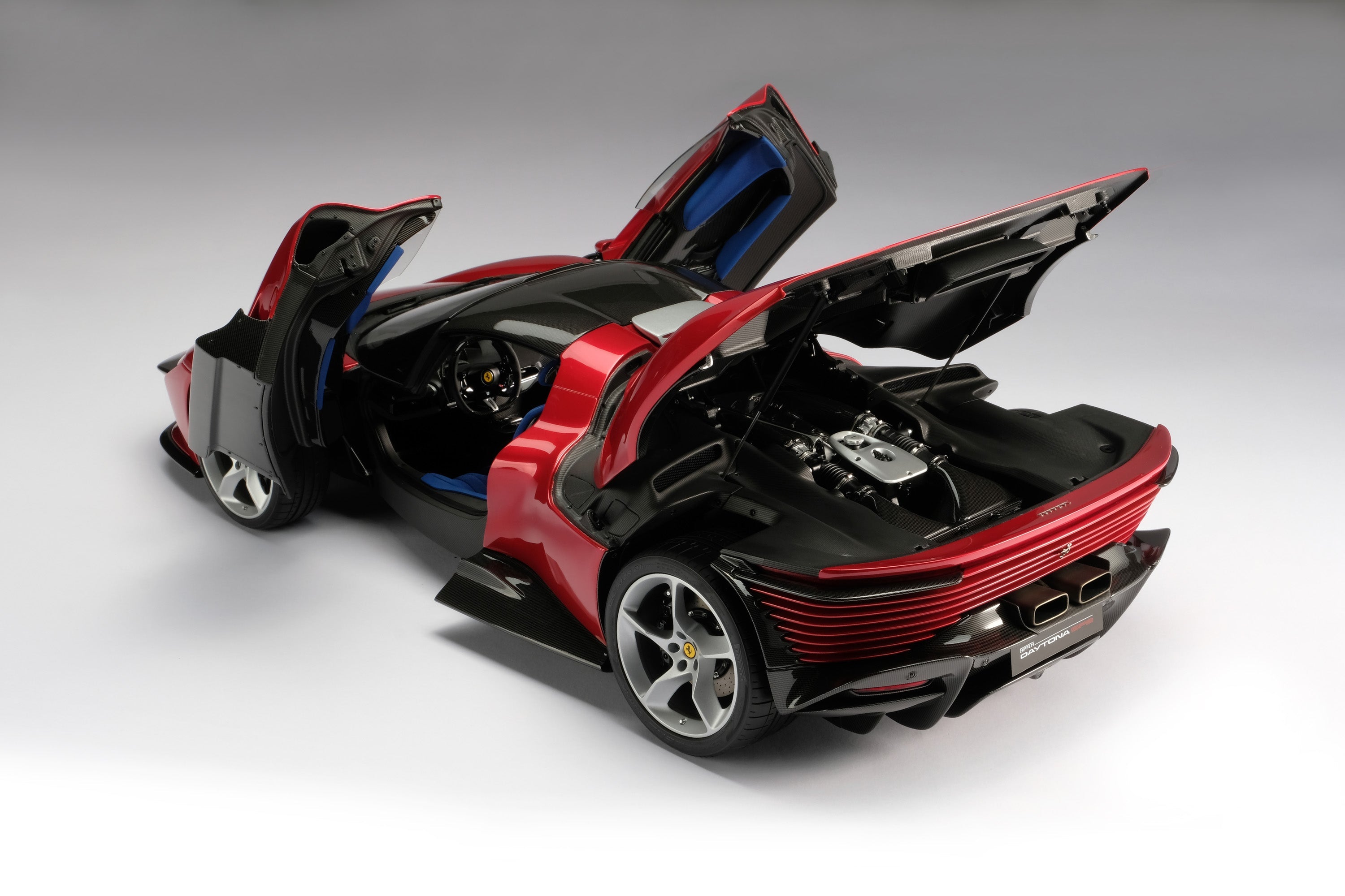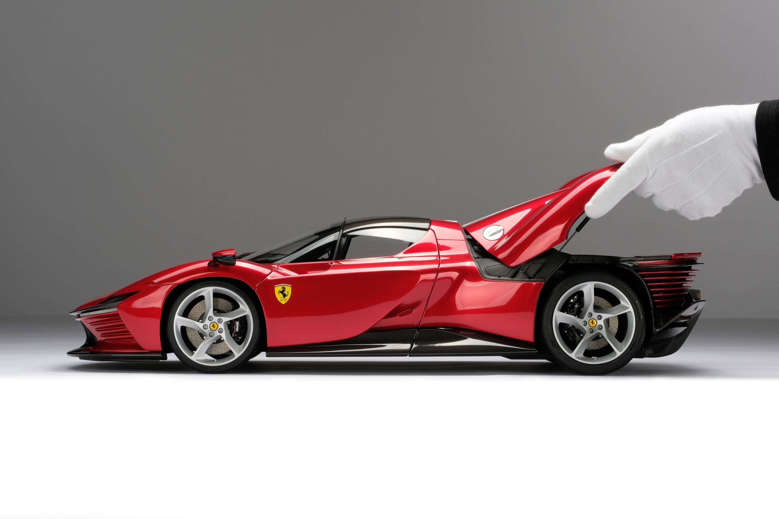 This fine 1:8 scale model of the Ferrari Daytona SP3 has been handcrafted and finished in our workshops using CAD directly from Ferrari’s design office allowing us to perfectly recreate every detail at scale. Finally, the prototype model has undergone detailed scrutiny by Ferrari’s engineering and design teams to ensure complete accuracy of representation.
