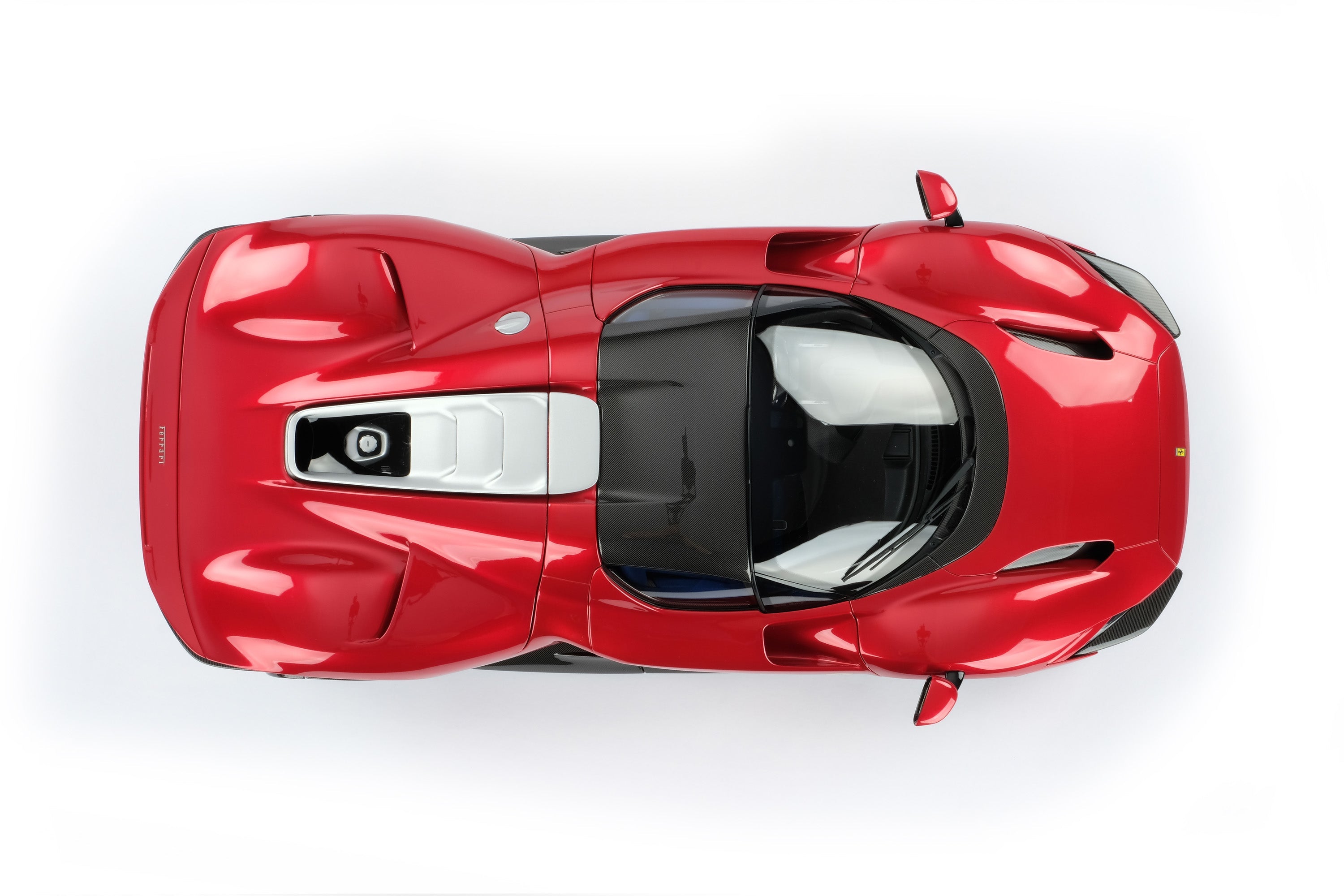 This essence has also been deeply incorporated into the car architecture, with the intent of creating harmony between the driver and the car. With the same aim to reduce weight as in the LaFerrari, the seats have been integrated into the chassis, optimising driving position and promoted the feeling of a single-seater car. The chassis and body shell are made entirely from the composite material, technology that was deriving from Formula 1, creating excellent weight and structural rigidity. Pirelli helped develop the car’s new tyres, the new P Zero Corsa, to optimise them for both dry and wet performance ensuring stability in low grip situations.