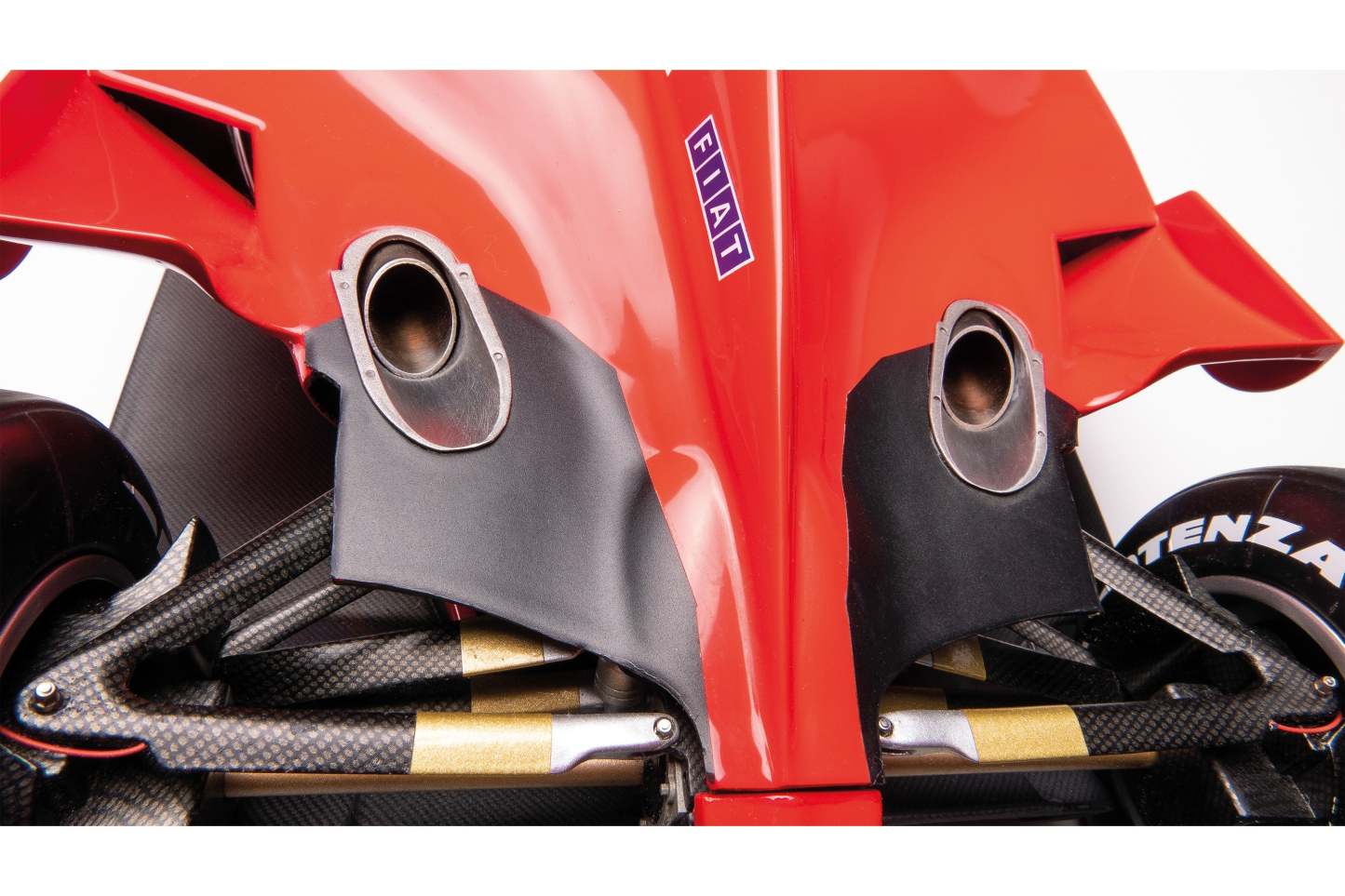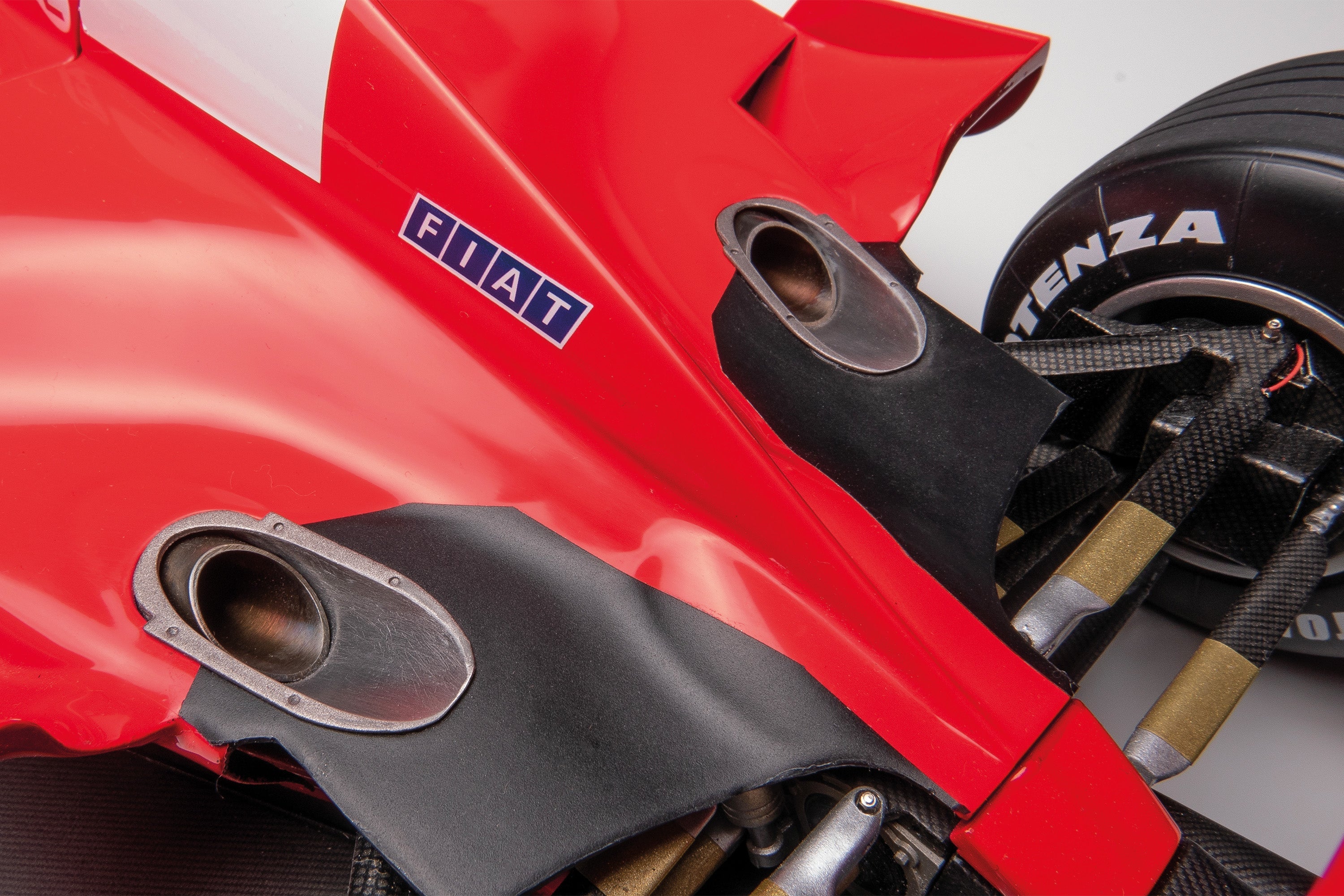 The car was a direct development of the previous year’s F399 that secured Ferrari their first Constructor’s Championship for sixteen years, still featuring a high nosecone and a single keel front suspension. However, the F1-2000 received some significant upgrades over its predecessor, particularly with its front-end aerodynamics. The car’s shape spoke volumes about the enormous amount of research that had gone into improving the lines and the surfaces to make it more efficient. Ferrari’s engineers also put in a lot of effort to lower the car's centre of gravity, even relocating the brake callipers to the bottom of the disc rather than being positioned vertically halfway up the brake disc. Most progress was made with the redesign of the Tipo 049 engine, as the cylinder bank angle was widened to 90°, resulting in a lower centre of gravity and increased stiffness as well as a better firing balance and more power.