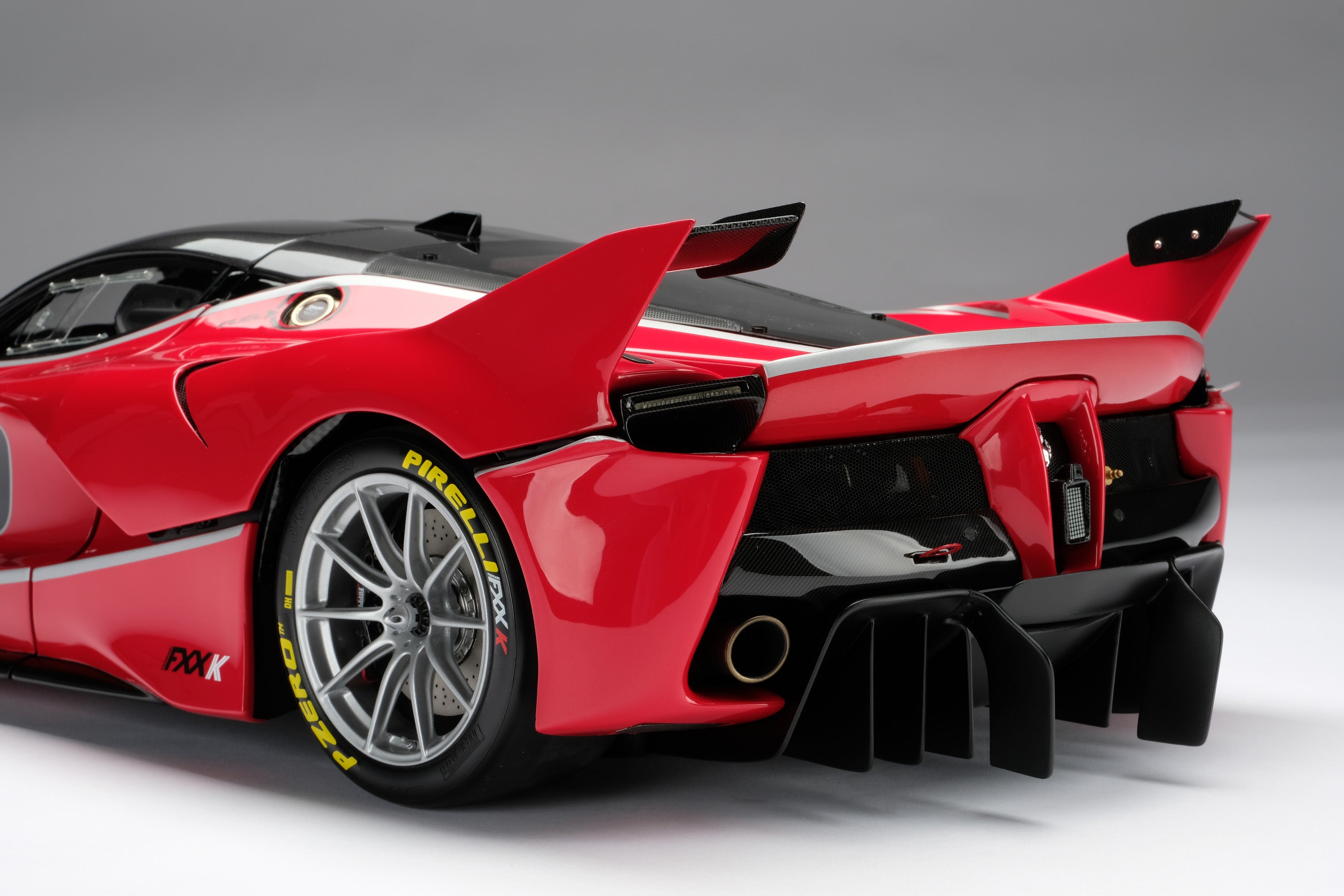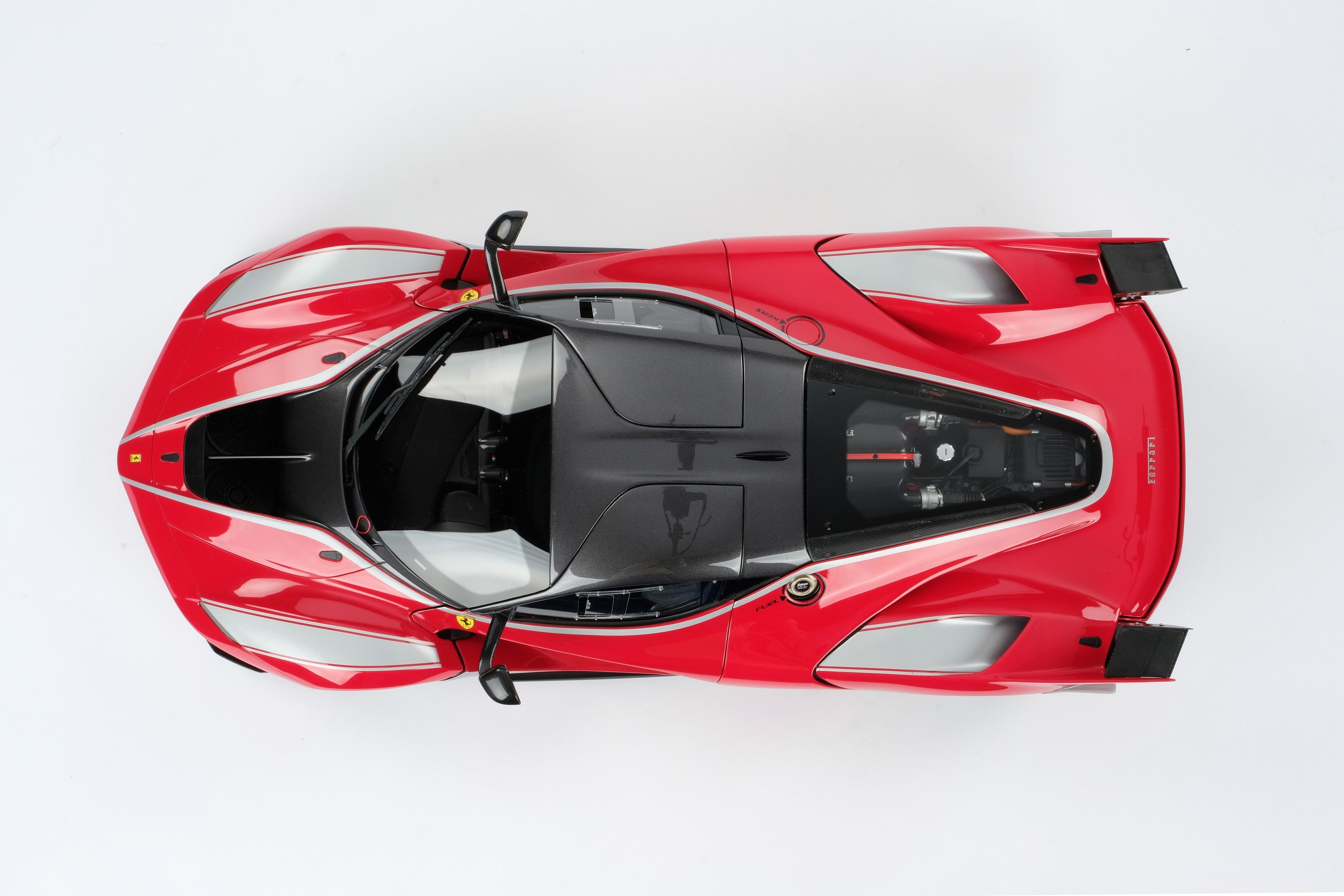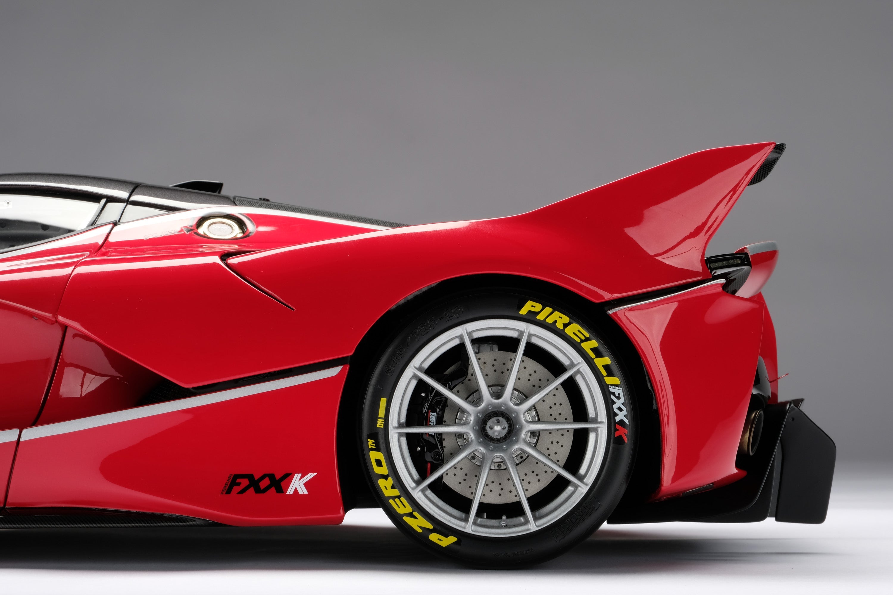 This fine 1:8 scale model of the Ferrari FXX K has been handcrafted and finished in our workshops with the co-operation and assistance of Ferrari regarding original finishes, materials, archive imagery and drawings. The use of supremely accurate digital scanning of the original car has allowed us to perfectly recreate every detail at scale. Furthermore, it has undergone detailed scrutiny by both engineering and design teams to ensure complete accuracy of representation.
