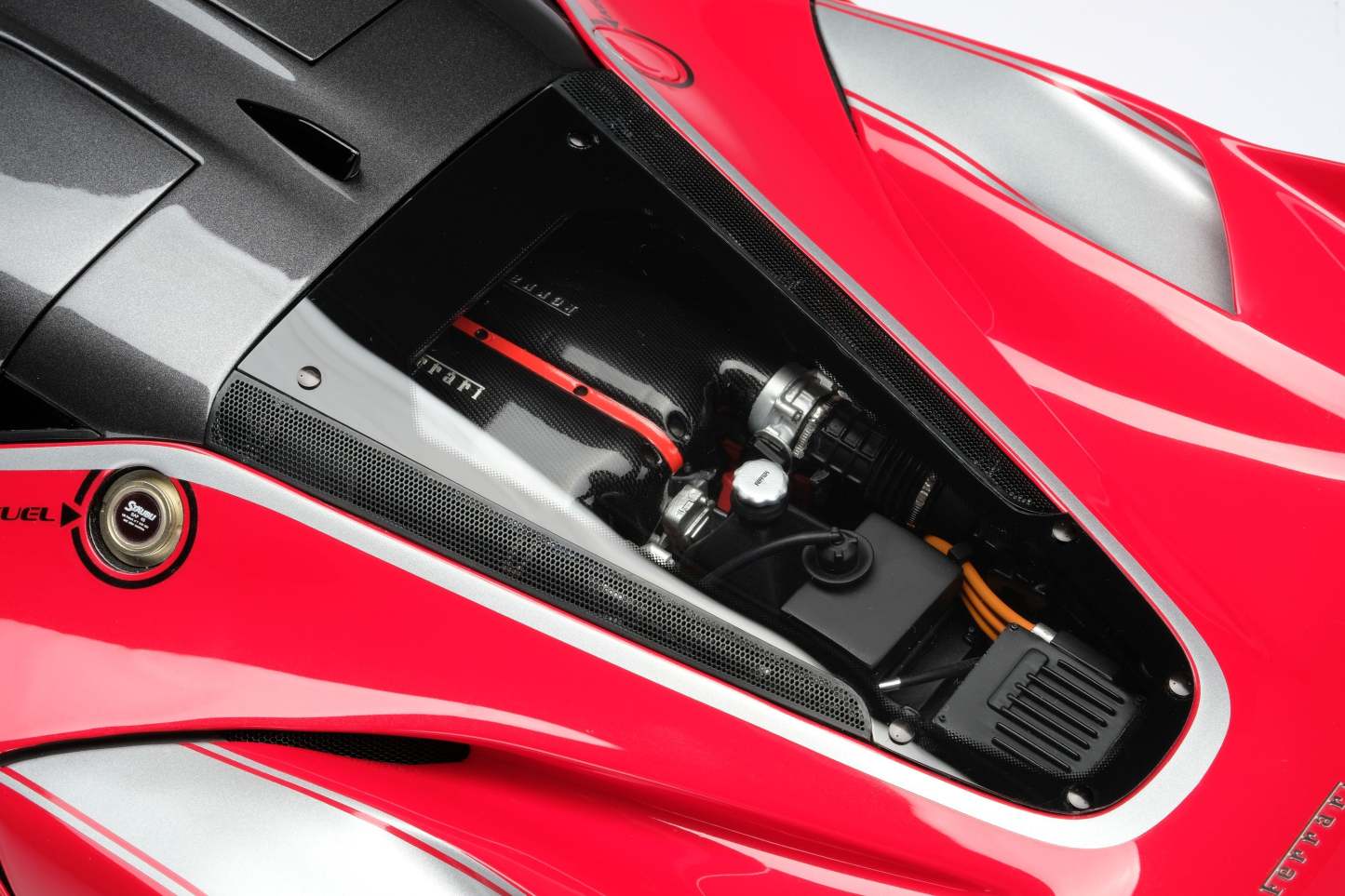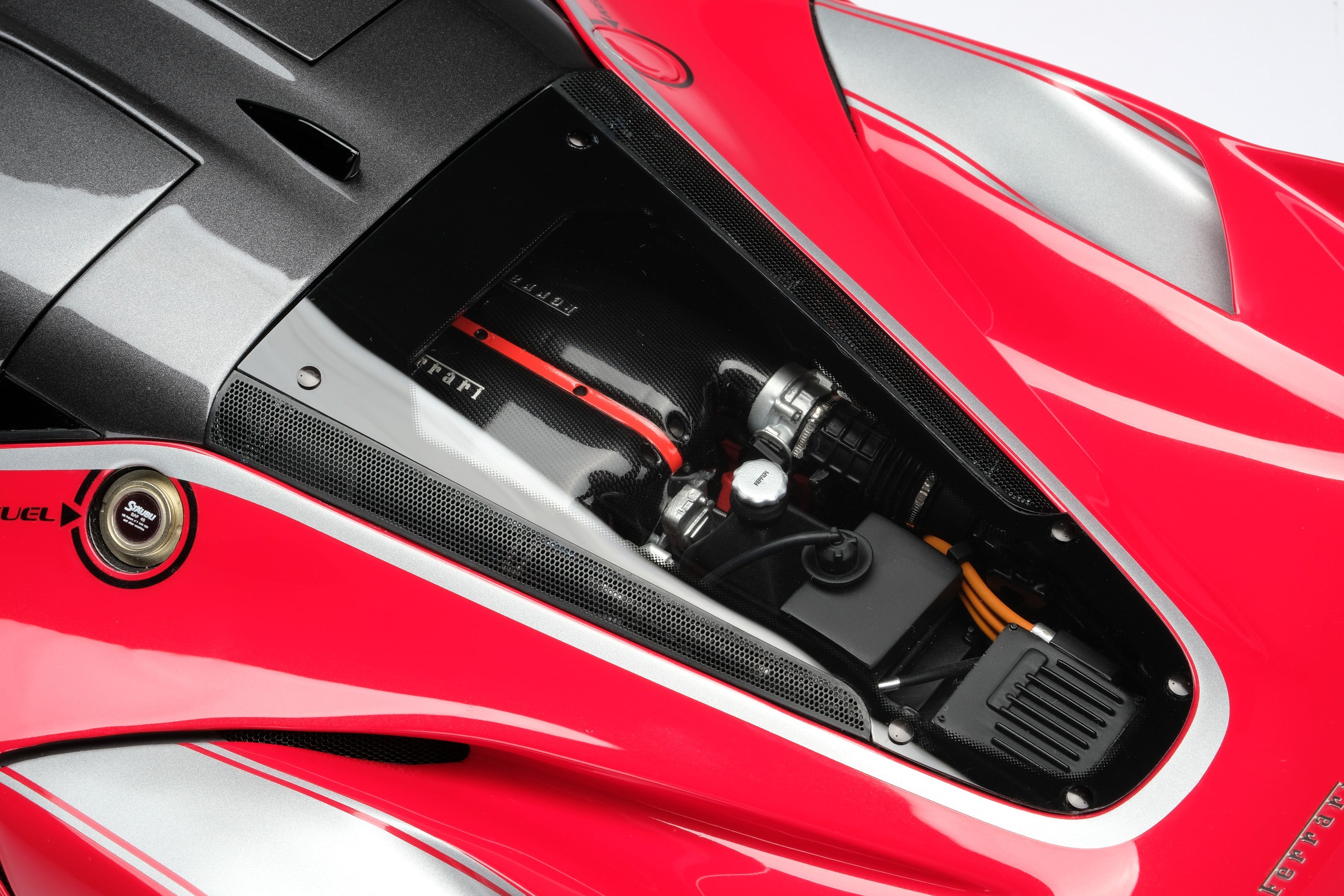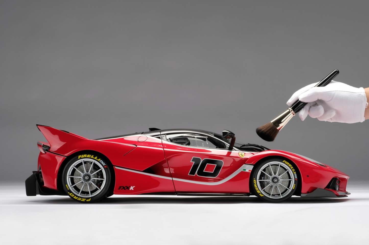 This fine 1:8 scale model of the Ferrari FXX K has been handcrafted and finished in our workshops with the co-operation and assistance of Ferrari regarding original finishes, materials, archive imagery and drawings. The use of supremely accurate digital scanning of the original car has allowed us to perfectly recreate every detail at scale. Furthermore, it has undergone detailed scrutiny by both engineering and design teams to ensure complete accuracy of representation.