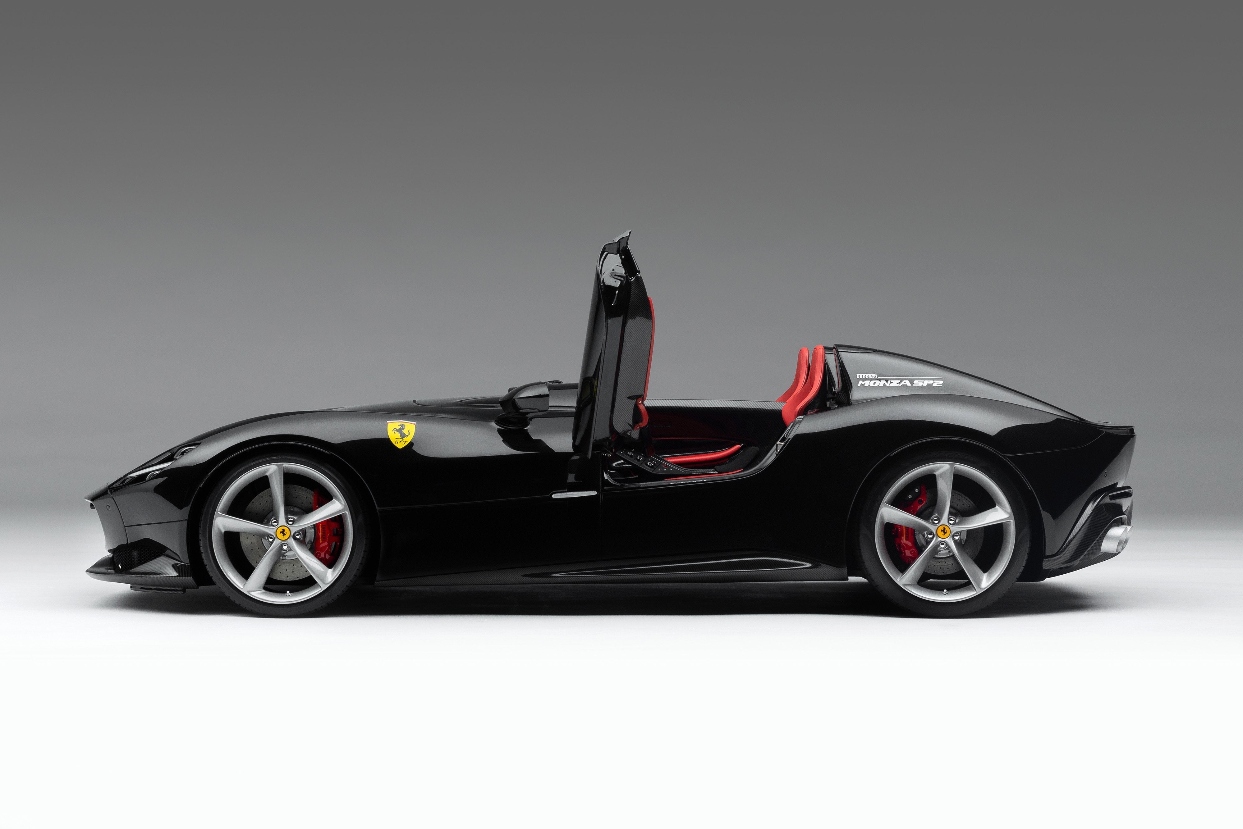 The Ferrari Monza SP1 and SP2 were designed as an uncompromising single-seat road car that offers a truly unique experience behind the wheel. It features a unique design, the best weight-to-power ratio of any barchetta, thanks to the extensive use of carbon-fibre in construction, and distinctive details, such as head-and tail-lights, wheels and interior, which further enhance the cars’ exclusivity. Equipped with the most powerful engine Maranello has ever built, a 810 cv V12, they can sprint from 0-100 km/h in 2.9 seconds and 0-200 km/h in 7.9 seconds.