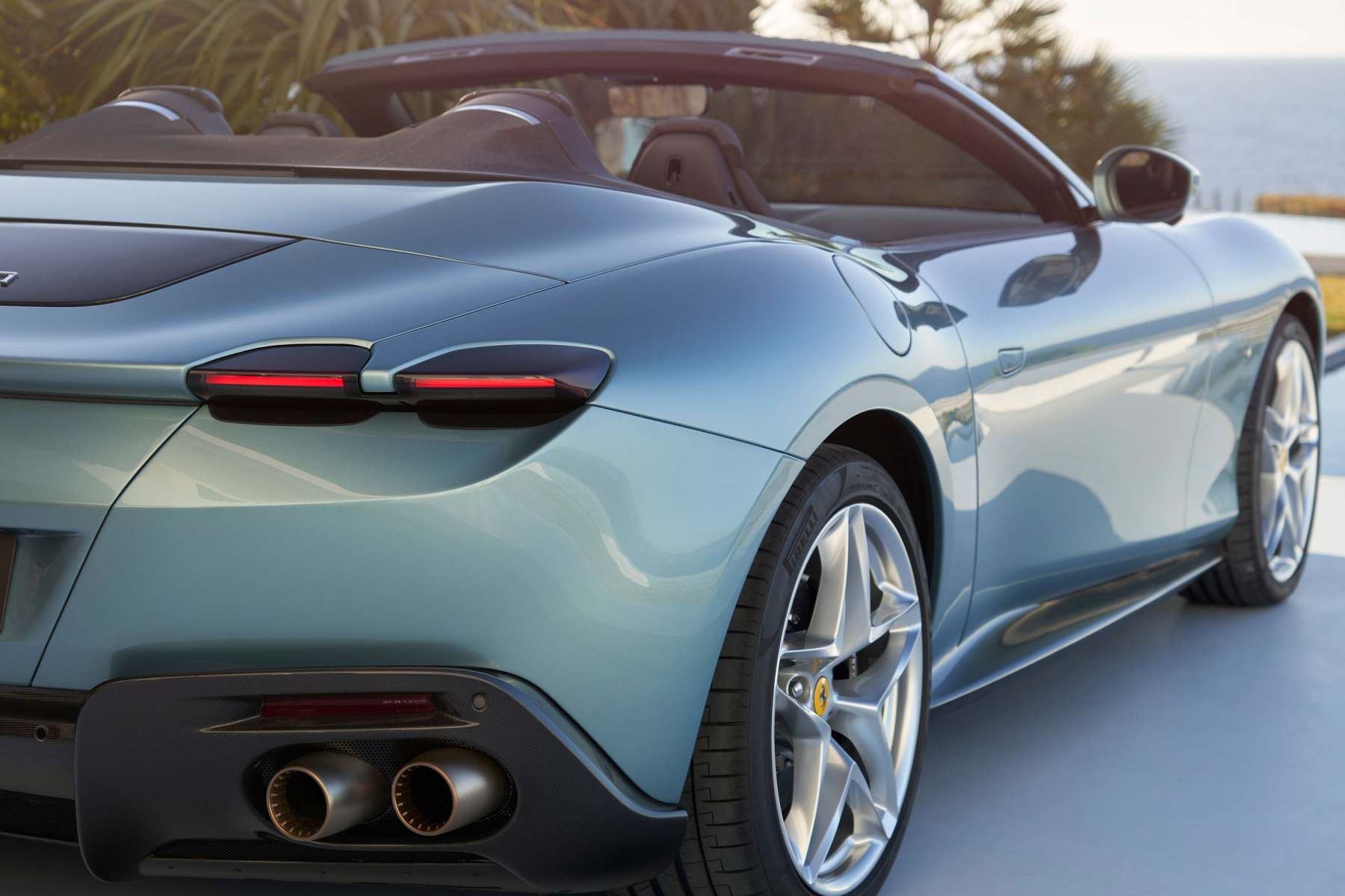 Ferrari’s engineers developed a pioneering mobile rear spoiler that has been integrated into the Roma Spider’s rear screen, designed to retain the car’s pure, graceful design when retracted whilst guaranteeing the downforce vital for the Roma Spider’s phenomenal performance by automatically deploying at high speeds. This has been done to guarantee best-in-class performance while still preserving the stylistic purity of its bloodline. The Roma Spider also features a patented wind deflector that can be deployed by the driver without stopping the car.