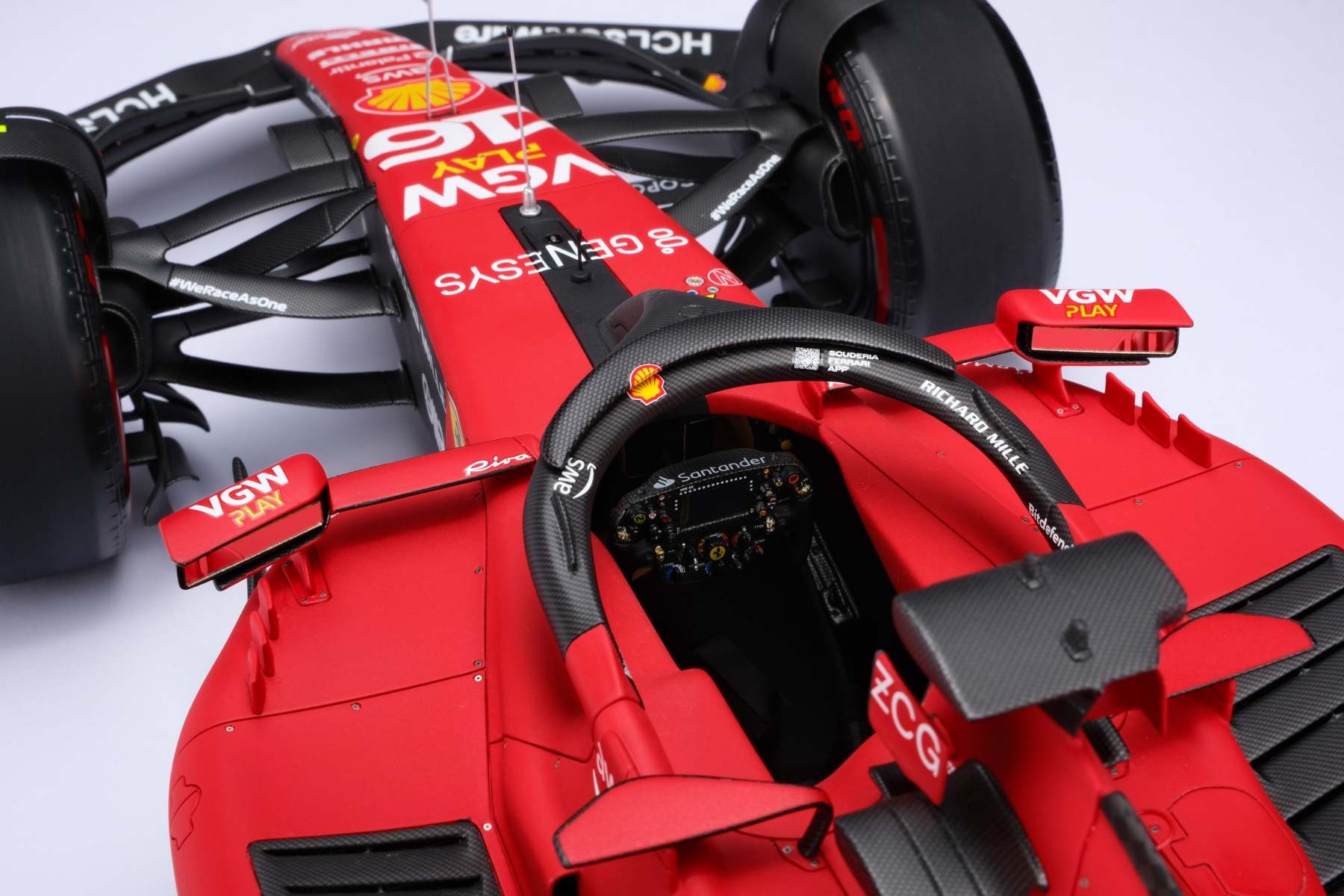 This fine 1:8 scale model is of the Ferrari SF-23 as raced by Charles Leclerc and Carlos Sainz during the 2023 FIA Formula One World Championship. This model has been handcrafted and finished in our workshops with the co-operation and assistance of Scuderia Ferrari regarding original CAD data, finishes and paint codes. Furthermore, it has undergone detailed scrutiny by both engineering and design teams to ensure complete accuracy of representation.