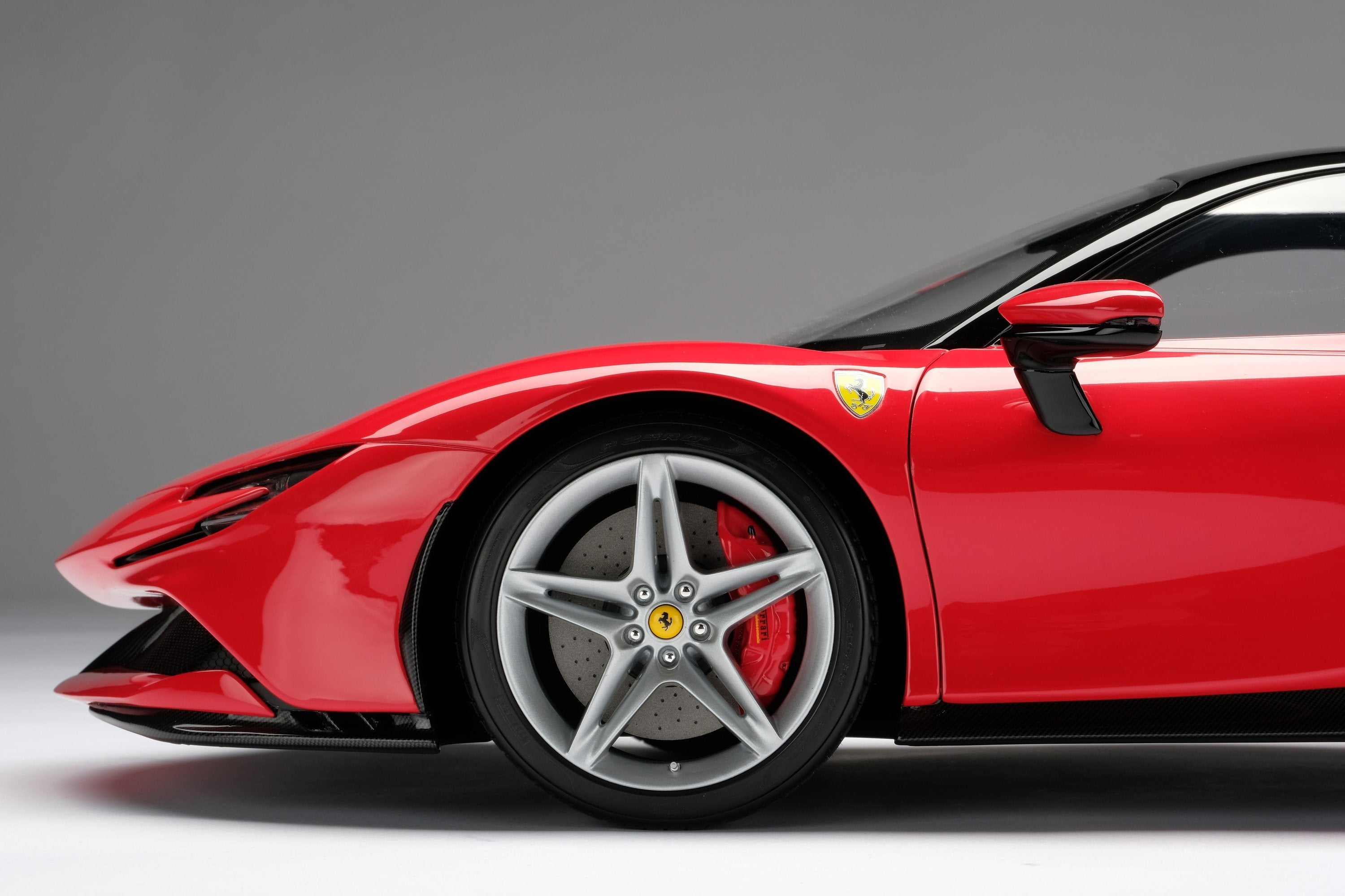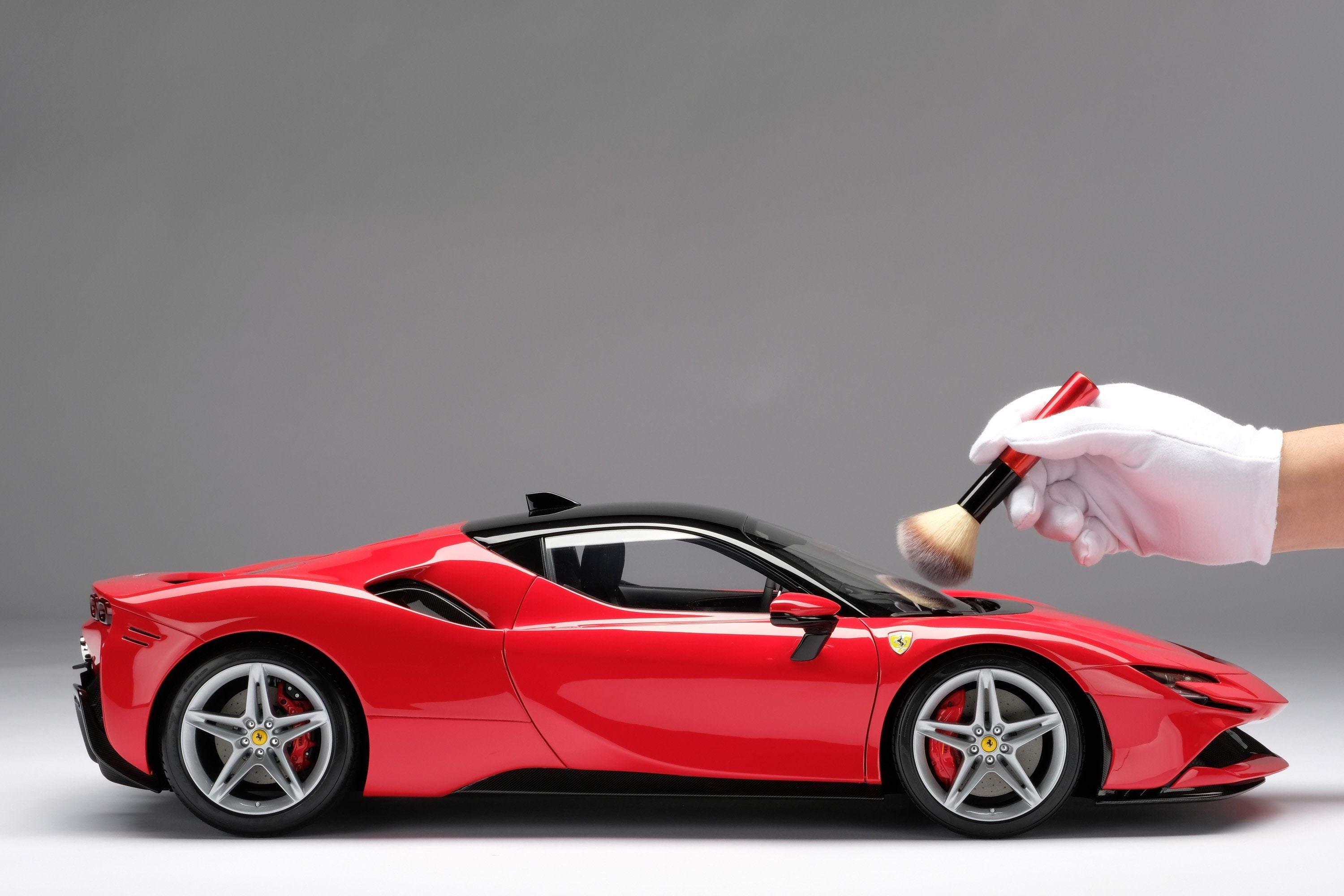 This fine 1:8 scale model of the Ferrari SF90 Stradale has been handcrafted and finished in our workshops with the co-operation and assistance of Ferrari regarding original finishes, materials, archive imagery and drawings. The use of supremely accurate digital scanning of the original car has allowed us to perfectly recreate every detail at scale. Furthermore, it has undergone detailed scrutiny by both engineering and design teams to ensure complete accuracy of representation.