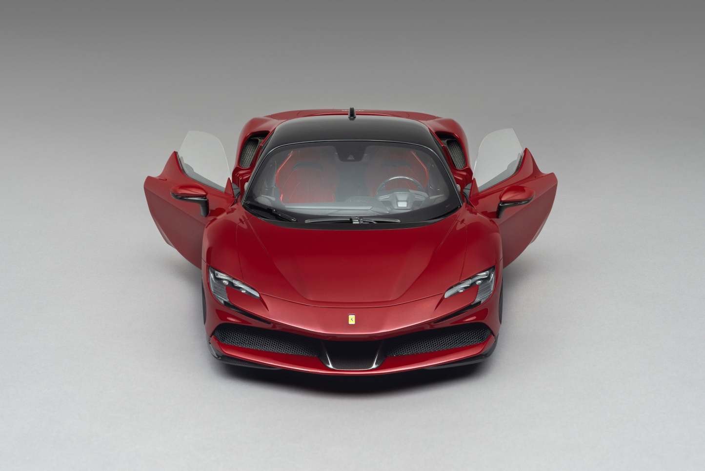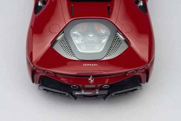 This fine bespoke 1:8 scale model of the Ferrari SF90 Stradale has been handcrafted and finished in our workshops with the co-operation and assistance of Ferrari regarding original finishes, materials, archive imagery and drawings. The use of supremely accurate digital scanning of the original car has allowed us to perfectly recreate every detail at scale. Furthermore, it has undergone detailed scrutiny by both engineering and design teams to ensure complete accuracy of representation.