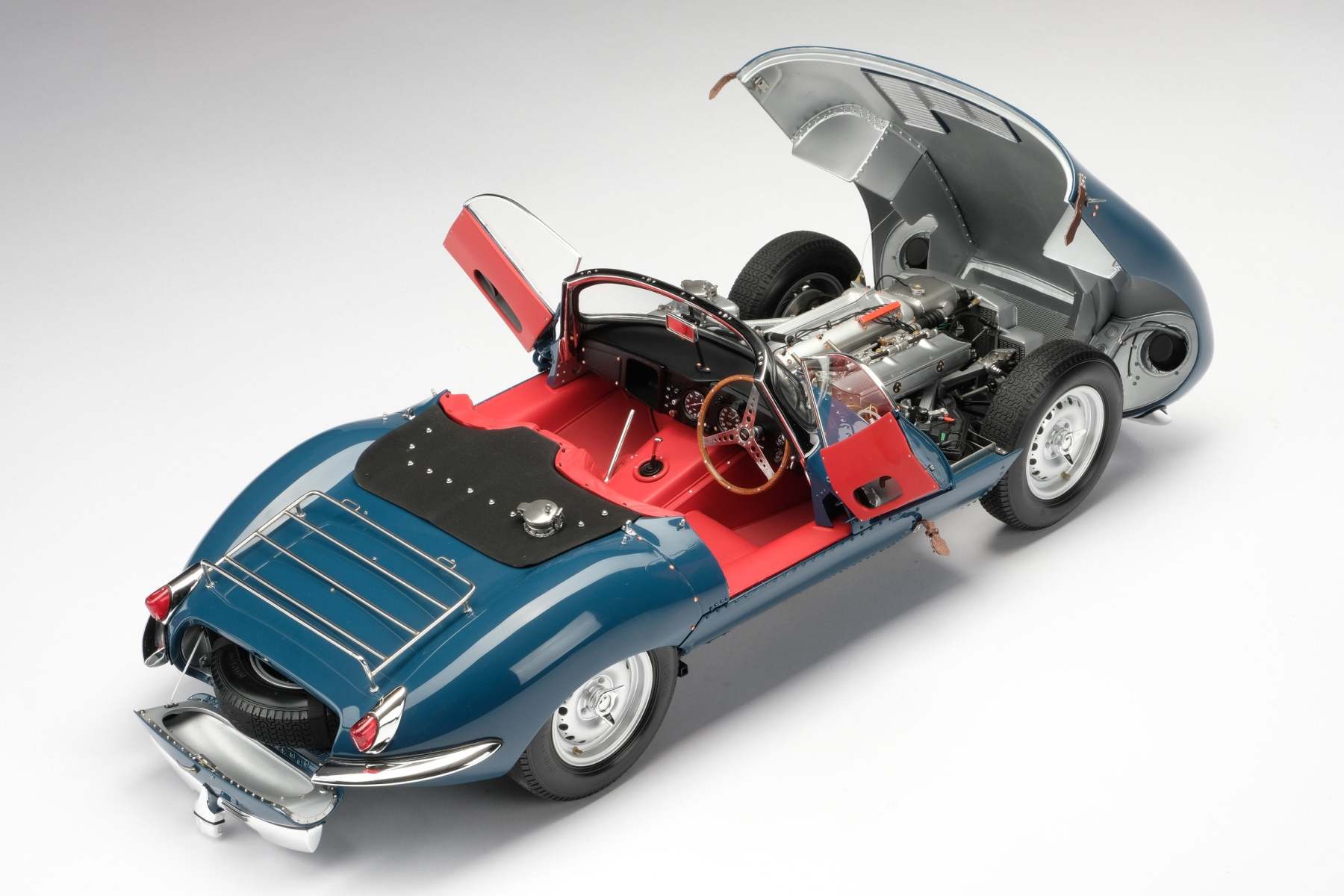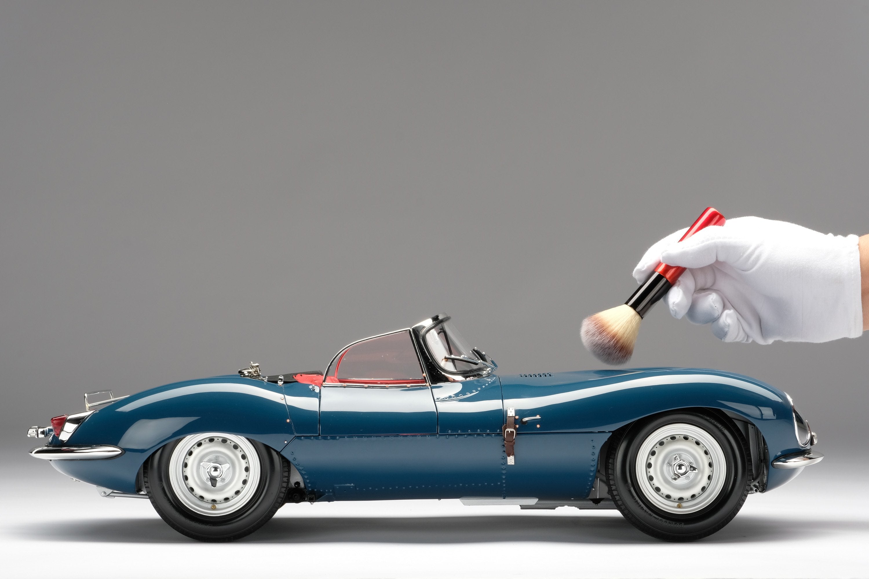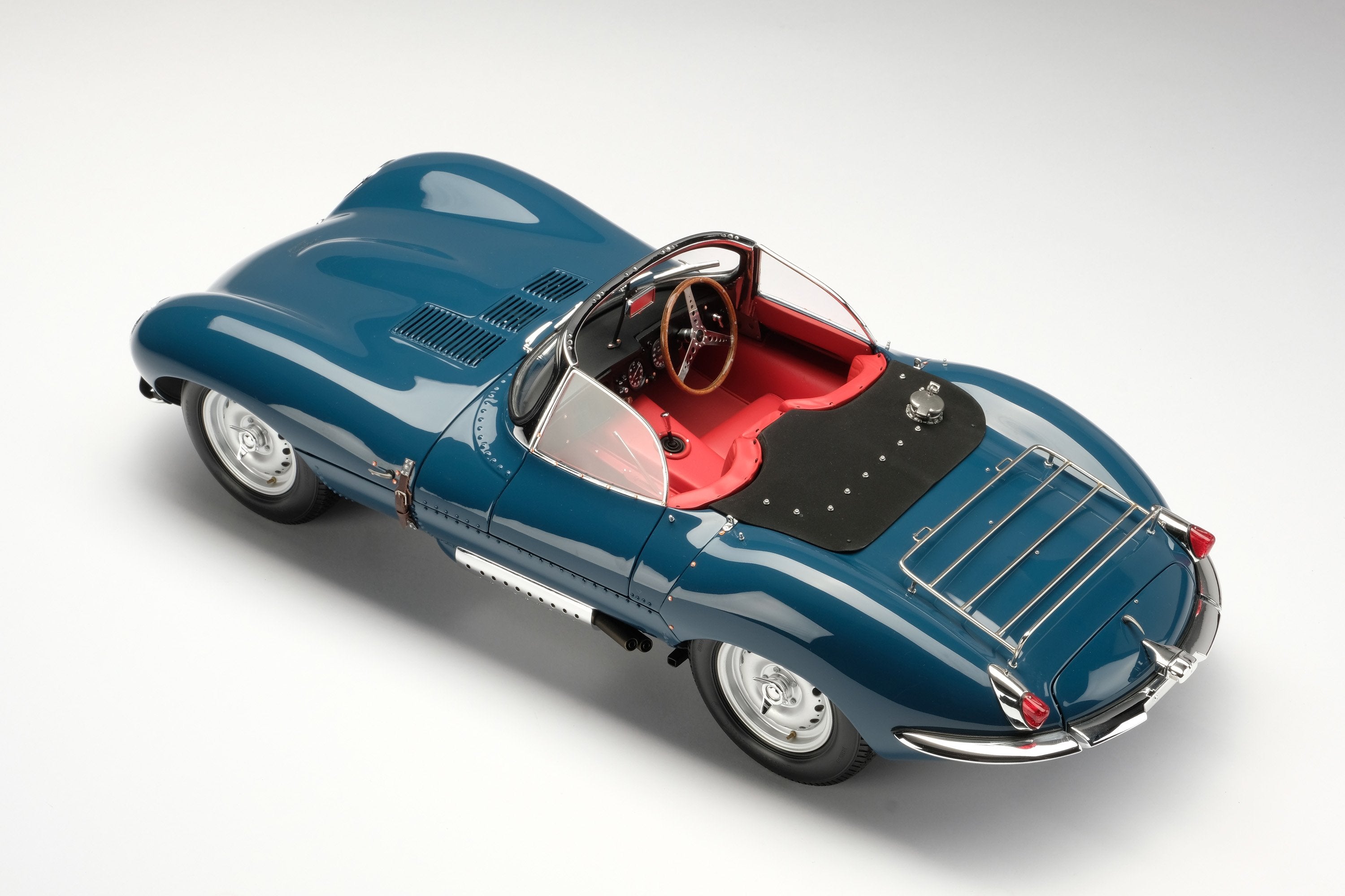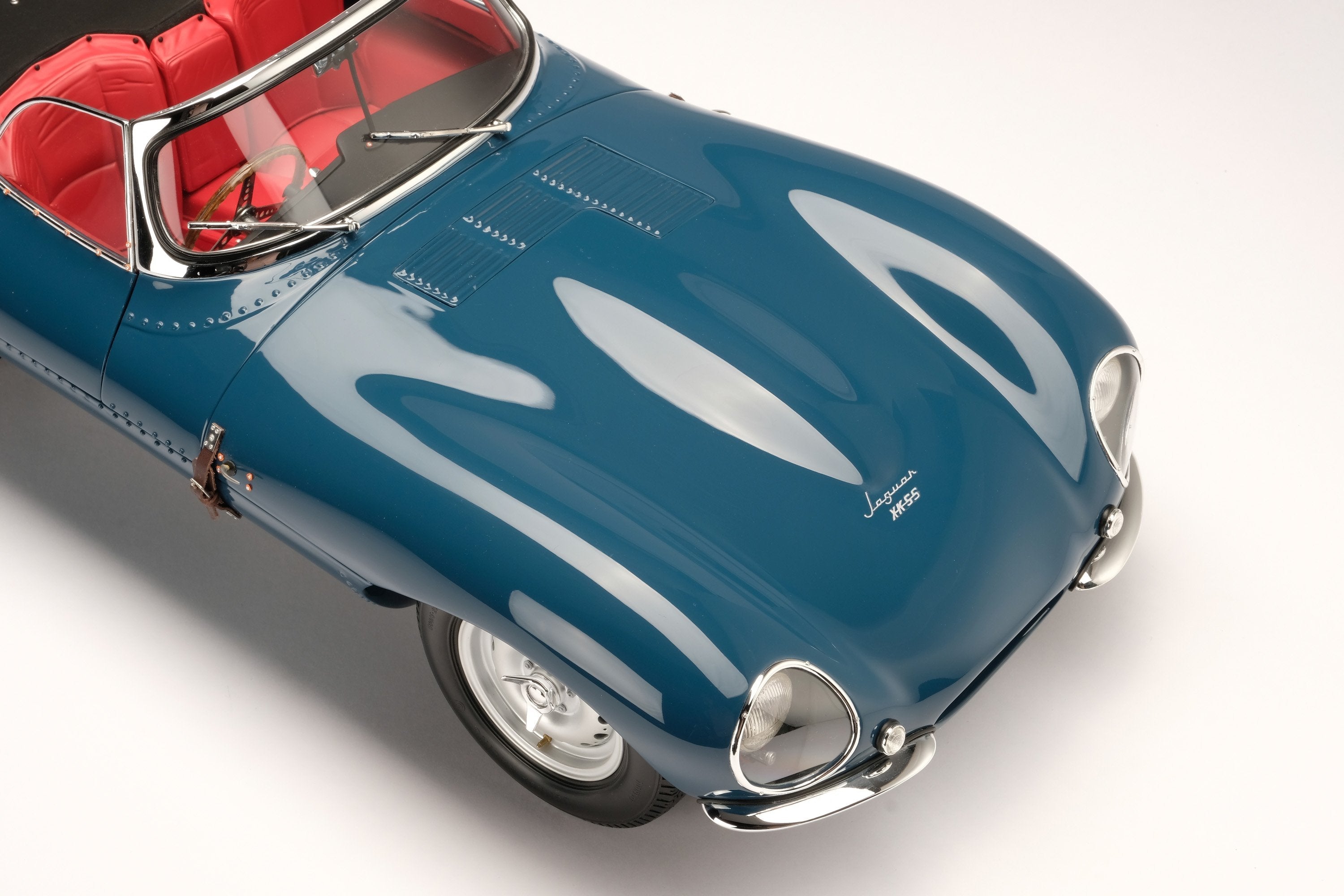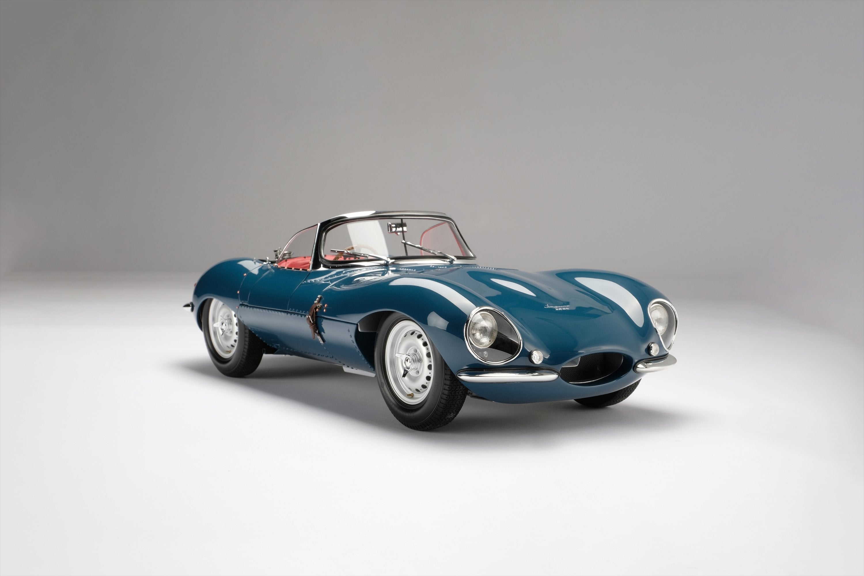 This perfect 1:8 scale Amalgam model of the Jaguar XKSS has been handcrafted and finished in our workshops with the co-operation and assistance of Jaguar regarding original finishes, materials, archive imagery and drawings. The use of supremely accurate digital scanning of the original car has allowed us to perfectly recreate every detail at scale. Furthermore, it has undergone detailed scrutiny by both engineering and design teams to ensure complete accuracy of representation.