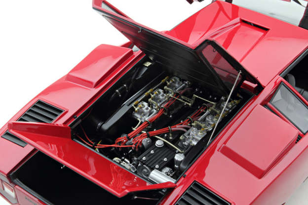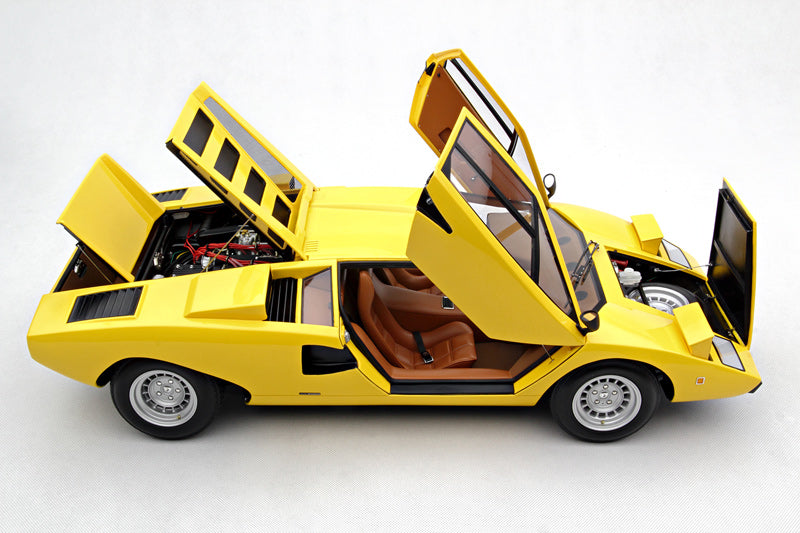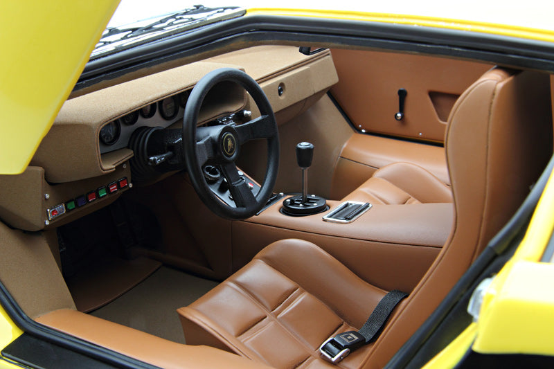 The LP400 was the first generation of Countach and was armed with a 4 litre V12 that produced 370 horsepower. The engine was mounted lengthways, giving the Countach its full name of LP (Longitudinale Posteriore). Little had altered from the final form of the prototype. The styling had become more aggressive as the car required large air scoops and vents to keep it from overheating and the conventional headlights were installed but, overall, the shape remained sleek. In total, 151 LP400s were built between 1974 and 1978.