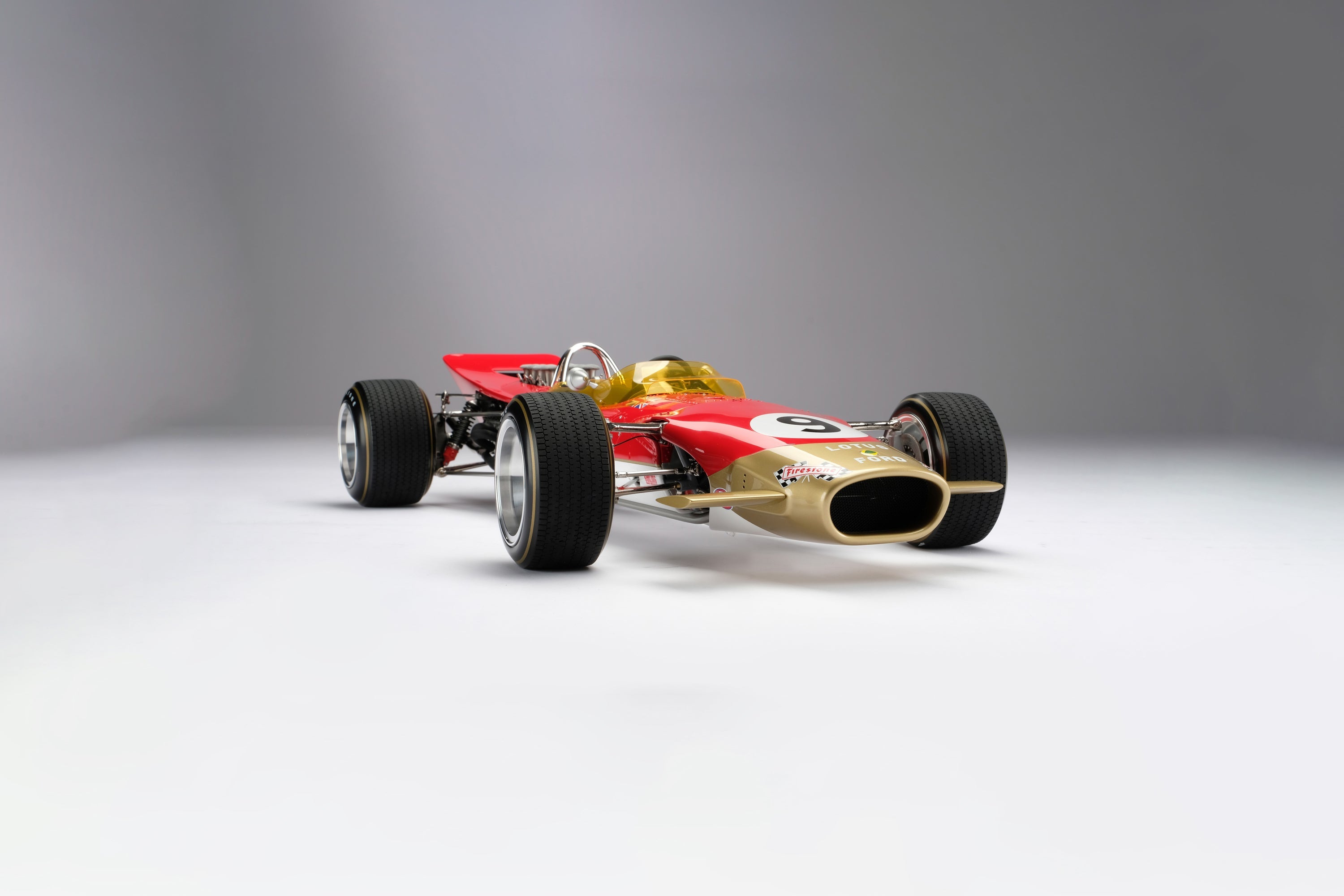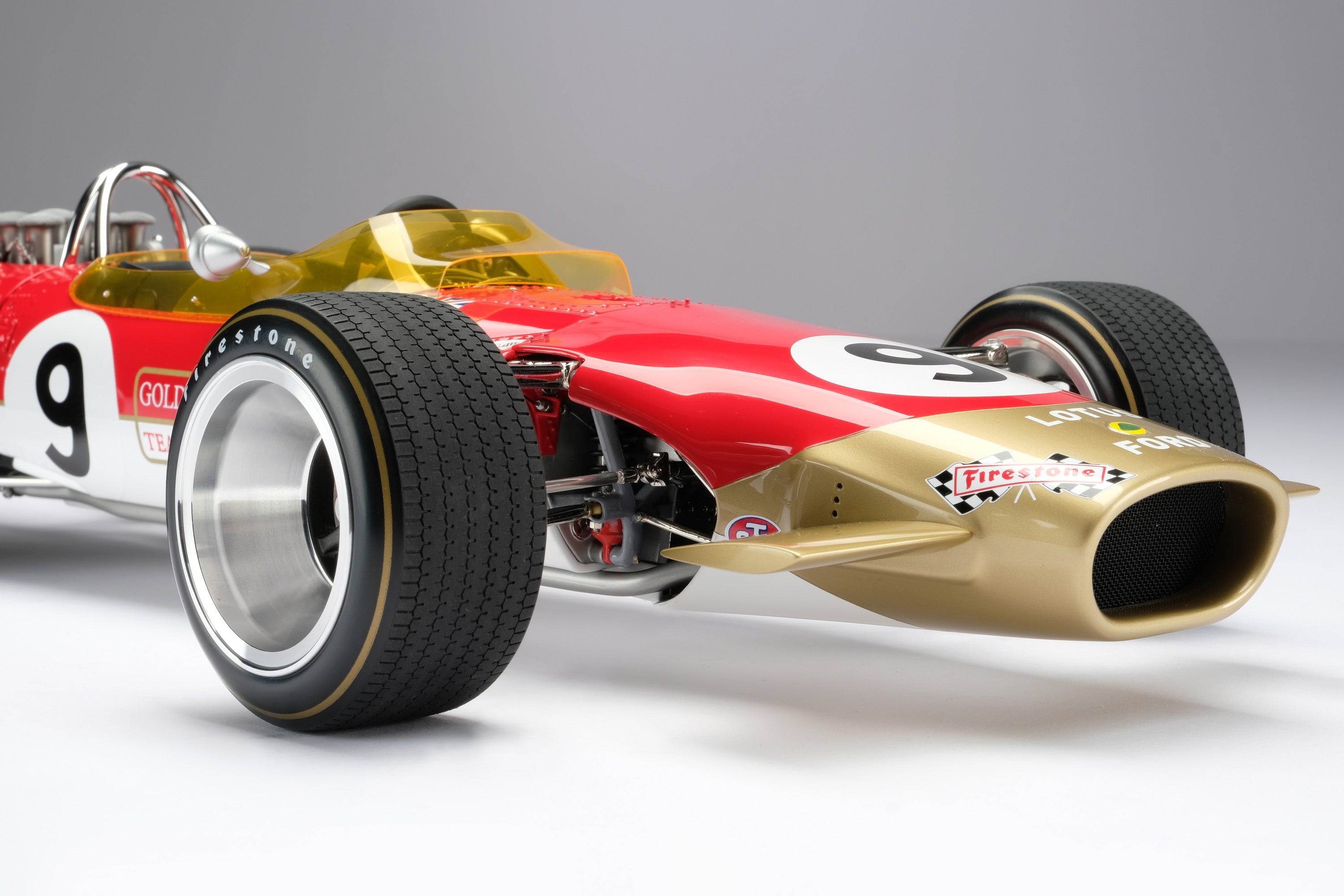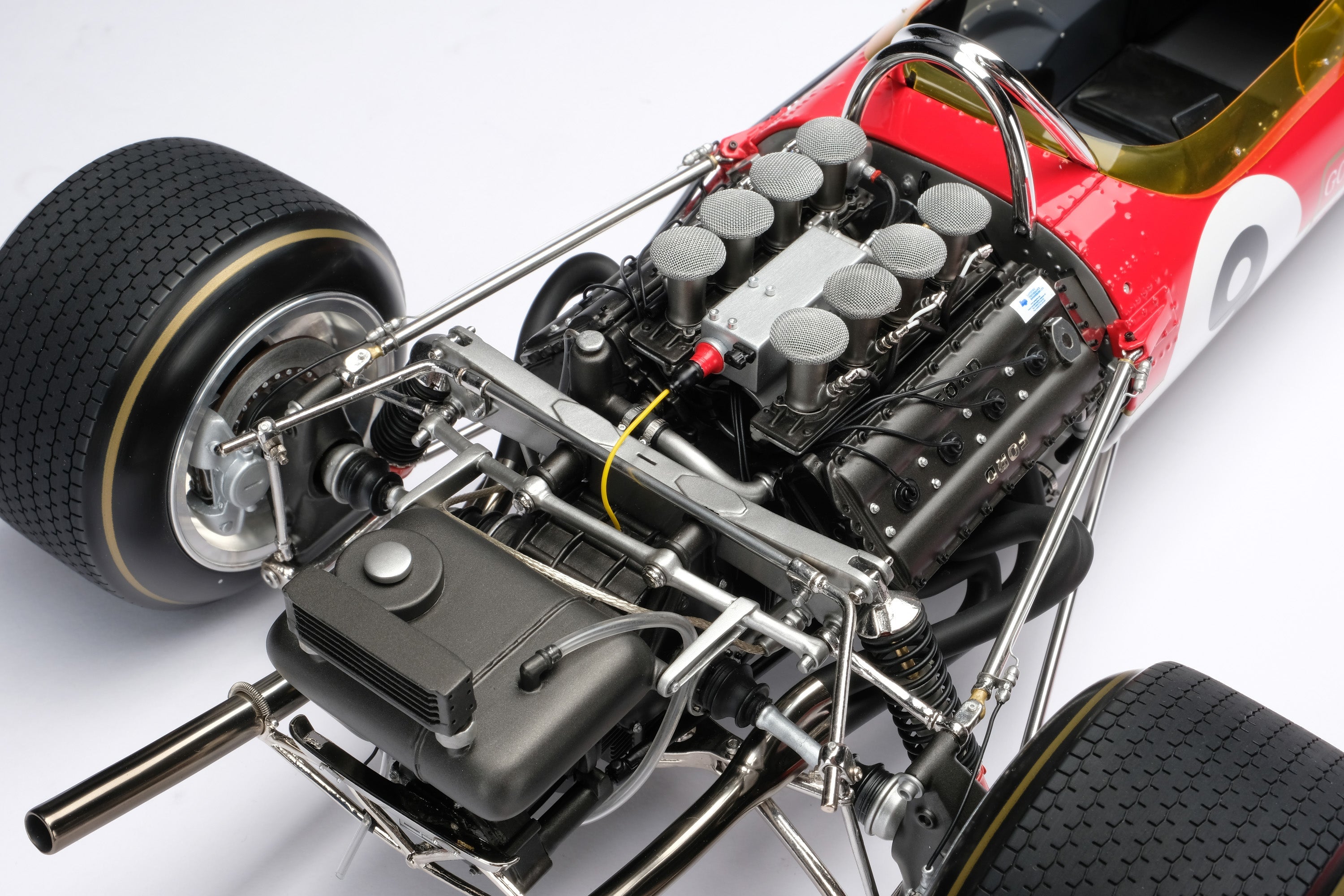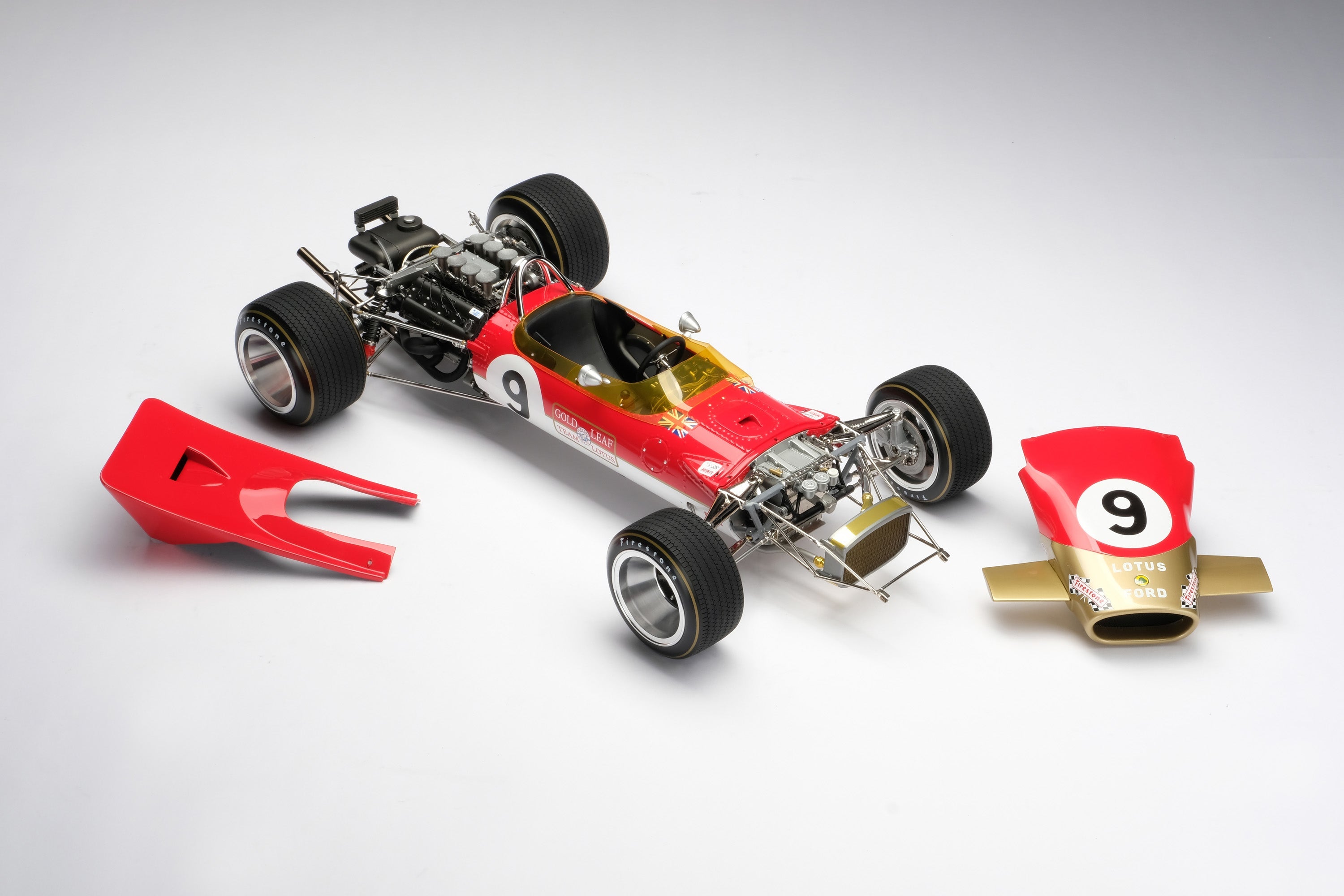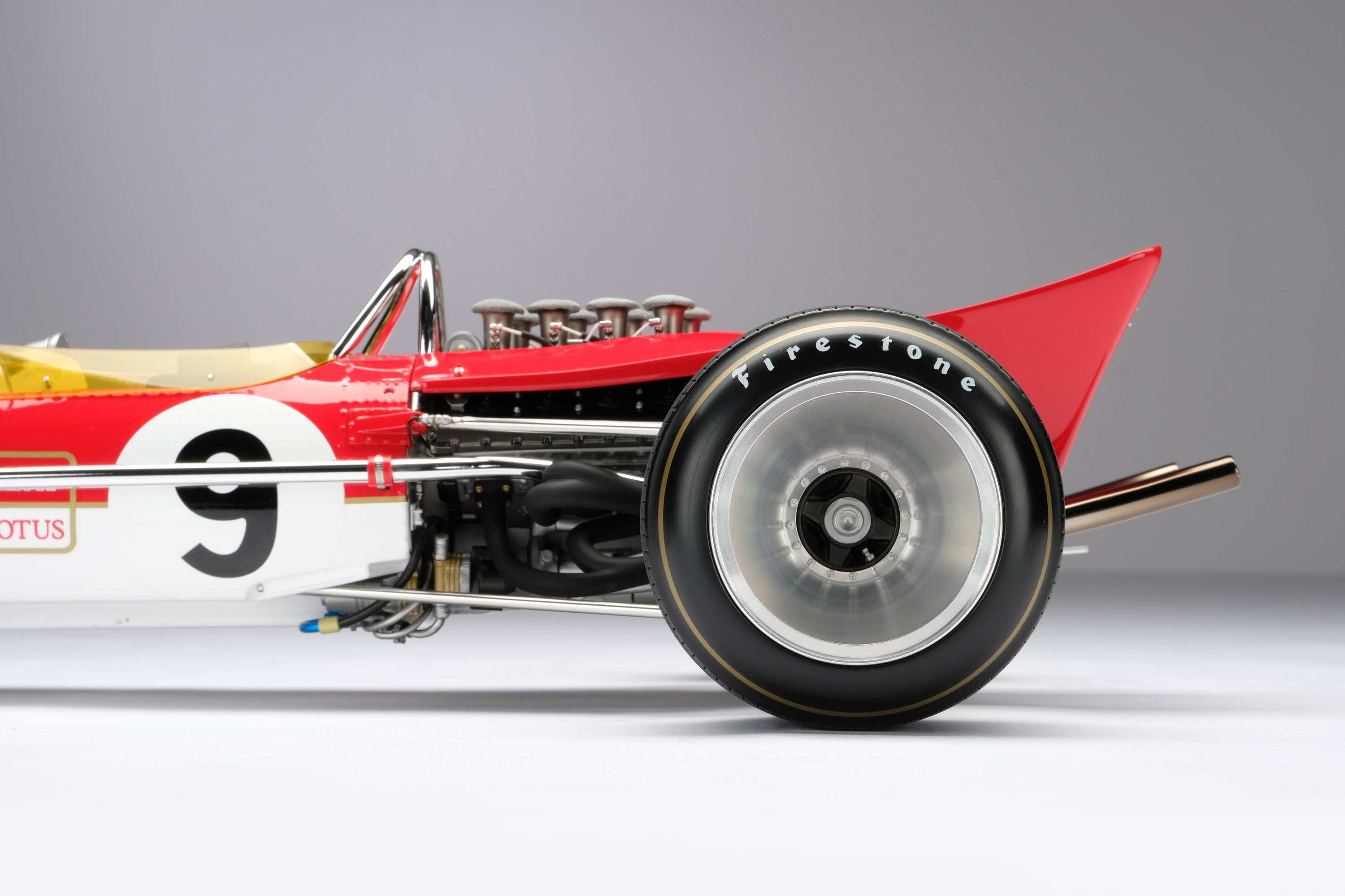 This model is a 1:8 scale recreation of the Lotus 49B as raced to victory by Graham Hill in the 1968 Monaco Grand Prix. Hill qualified on pole and survived an incident-packed race that saw only five cars reach the chequered flag, before he cemented his reputation as "Mr. Monaco" by taking his fourth win in the principality. Hill would go on to win his second World Championship whilst Lotus would win their third Constructors’ Title.