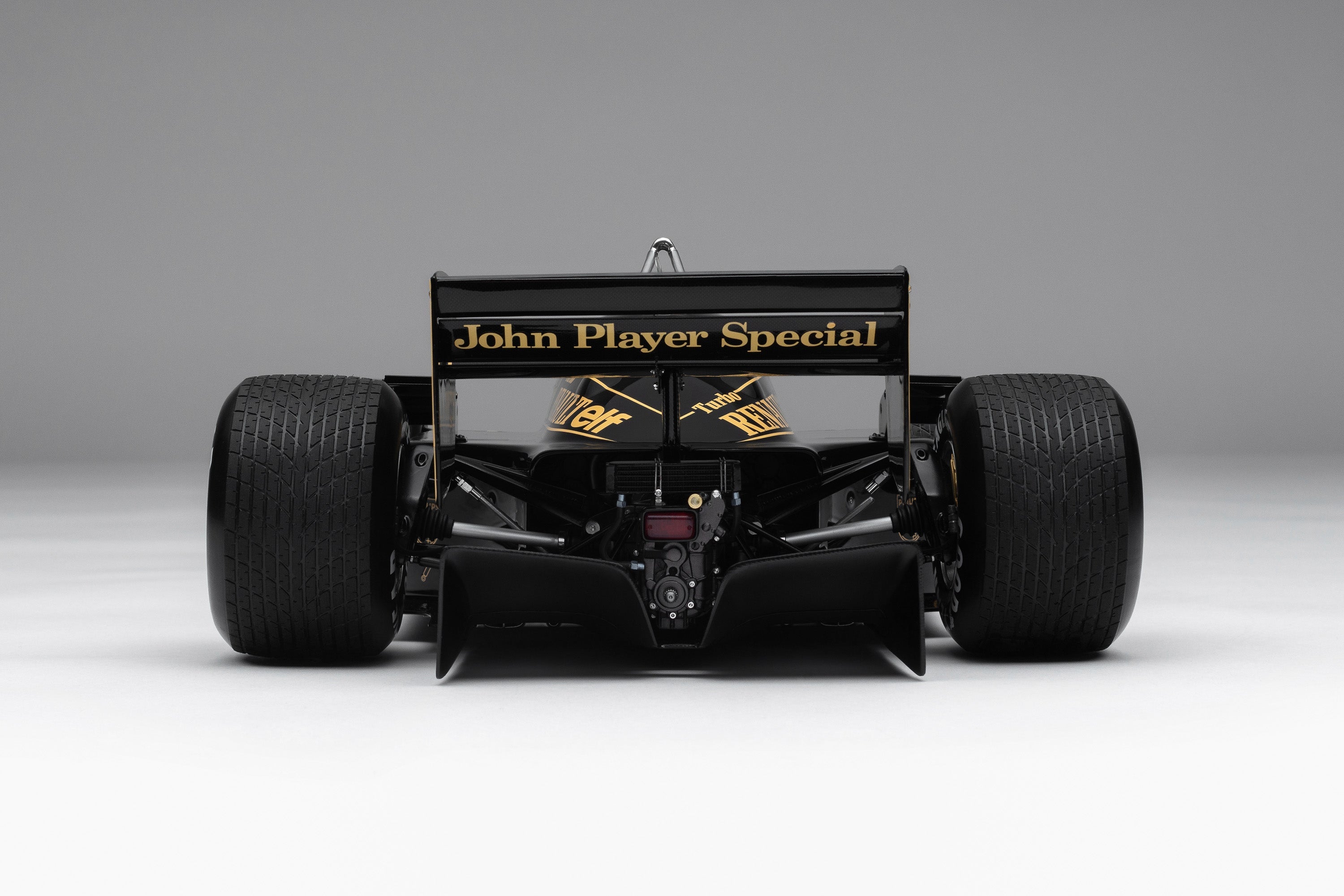 This perfect 1:8 scale recreation of the Lotus 97T is as raced by Ayrton Senna at the 1985 Portuguese Grand Prix. Senna qualified on pole half a second in front of favourite Alain Prost in his McLaren. The weather for the race was abysmal, described “survival of the fittest” by Renault driver Patrick Tambay, but rising star Senna demonstrated his mastery of the wet conditions. He controlled the over two hour long race from the start, lapping all but second place, who was still over a minute behind, and setting the fastest lap as well. This was both Senna’s first pole position and his first victory, feats he would go on the repeat 64 and 40 more times respectively. This win at Estoril birthed the legend of Senna. Race engineer, Steve Hallam, still recognises the importance of that first win: “It felt like the start of something, there’s no doubt about it.”