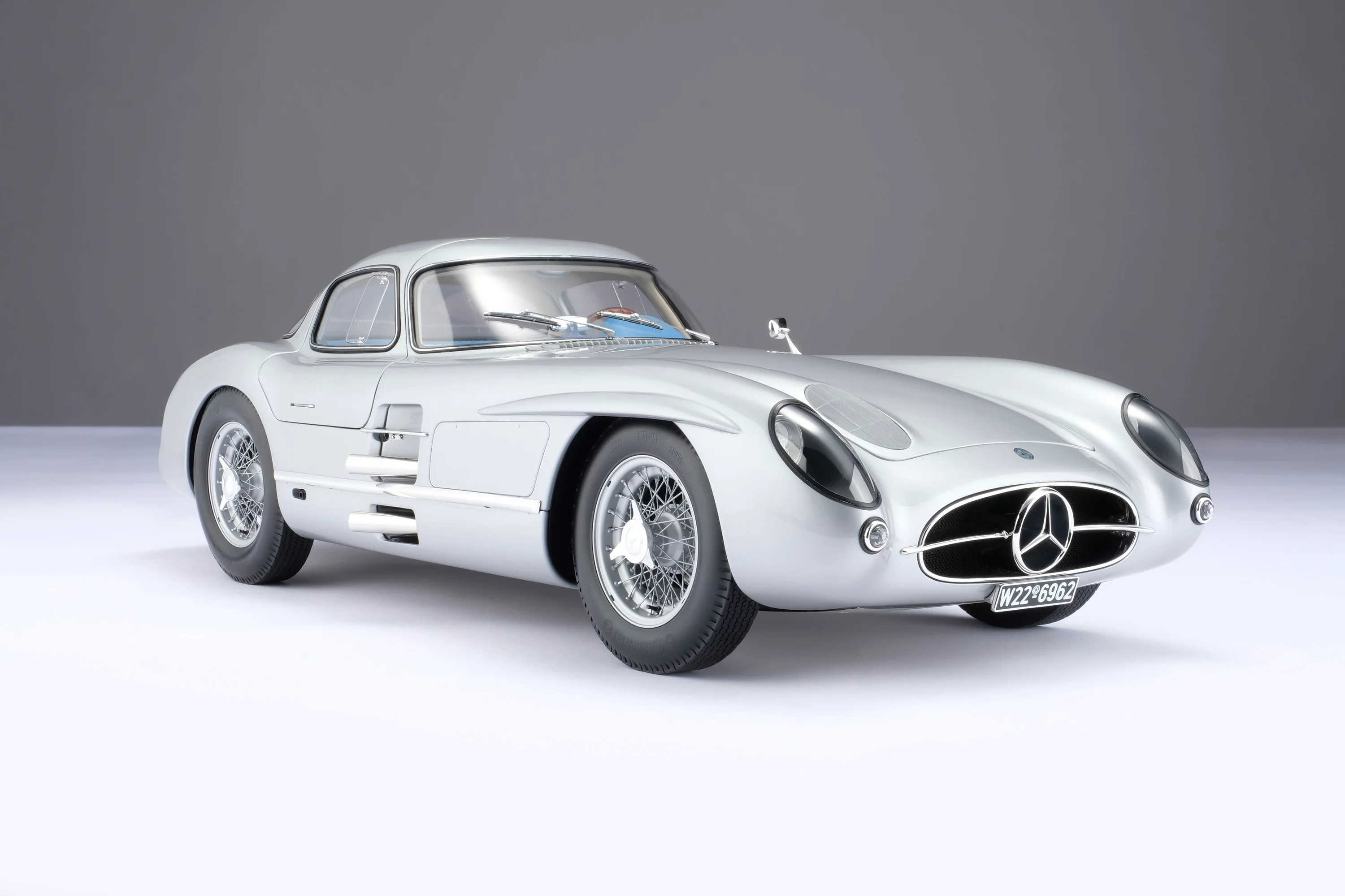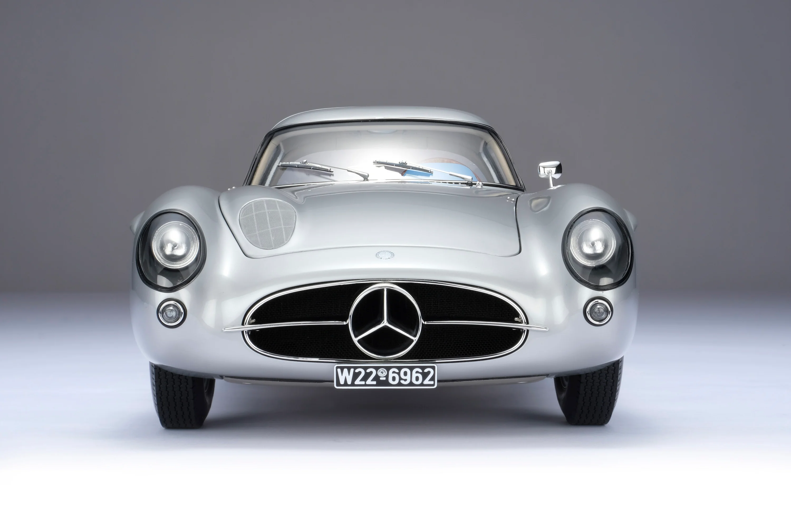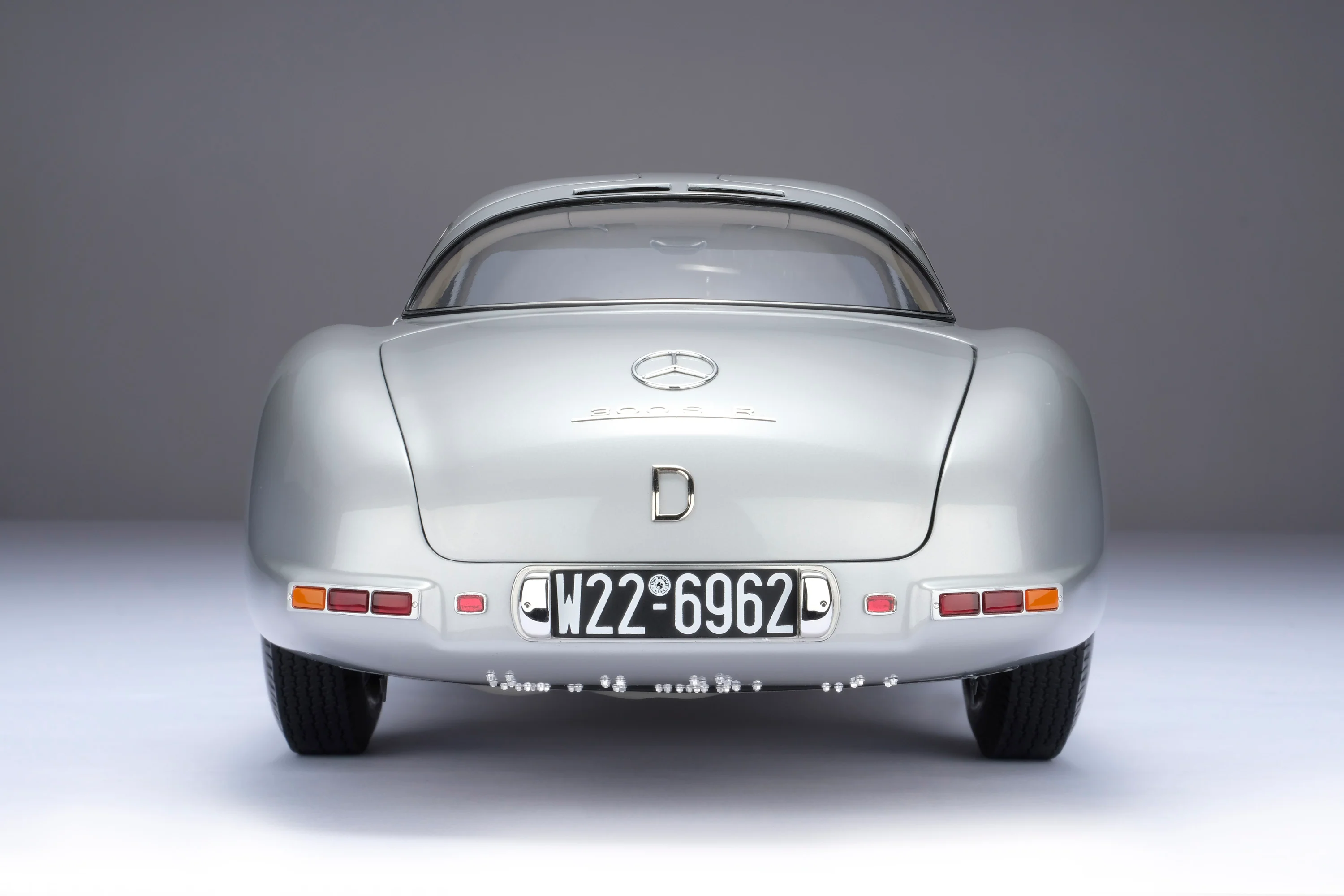 In the 1950s, Mercedes-Benz returned to motorsports, eager to revive their triumphs of the 1920s and ‘30s. While Juan Manuel Fangio dominated the 1954 and 1955 Formula 1 World Championships in his W196, Mercedes-Benz was developing the 300 SLR - Super Leicht Rennsport - for the Sports Car World Championship. Stirling Moss drove his open-top racer to victory at the Targa Florio and RAC Tourist Trophy, and famously completed the legendary Mille Miglia in record time, sealing the 1955 world title. The 300 SLR was blisteringly fast, far beyond any competition, but its open cockpit left its drivers exposed to wind and weather. Uhlenhaut devised the simple yet ingenious solution: adding a closed roof. This gave drivers greater comfort while dramatically reducing aerodynamic drag. The result was the 300 SLR Coupé. Yet it never competed. The Carrera Panamericana, where it was due to debut, was cancelled, and Mercedes-Benz withdrew from motorsports at the end of the year to focus on the development of passenger cars.