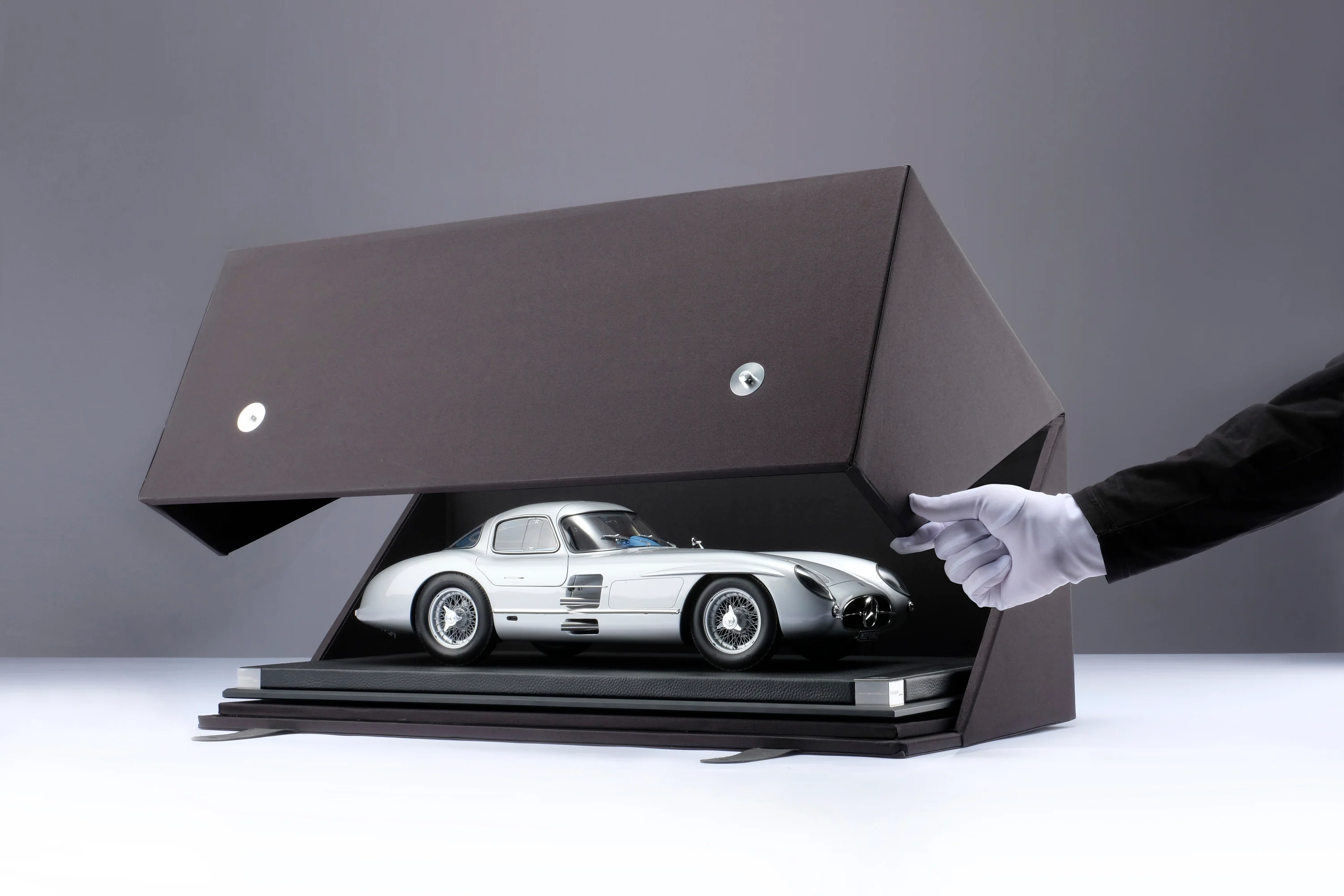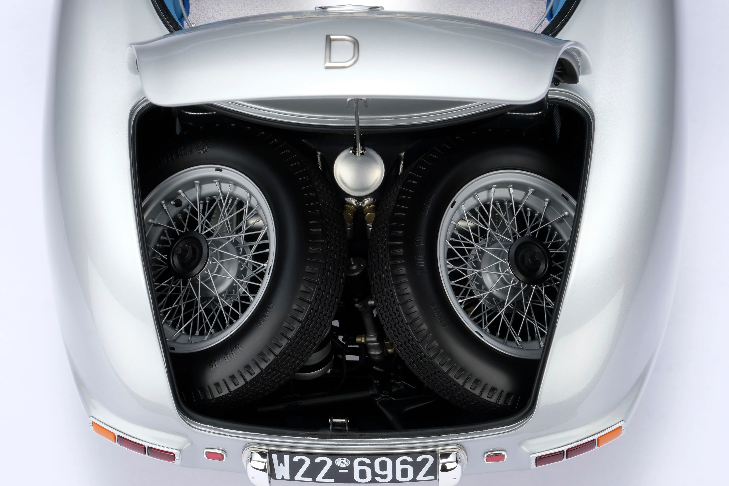 This fine 1:8 scale model of precisely replicates Mercedes-Benz chassis 00007/55, known as “The Blue”. It has been handcrafted and finished in our workshops with the co-operation and assistance of Mercedes-Benz regarding original finishes, materials, archive imagery and drawings. The use of supremely accurate digital scanning on the original car has allowed us to perfectly recreate every detail at scale. Furthermore, it has undergone detailed scrutiny by both engineering and design teams to ensure complete accuracy of representation.