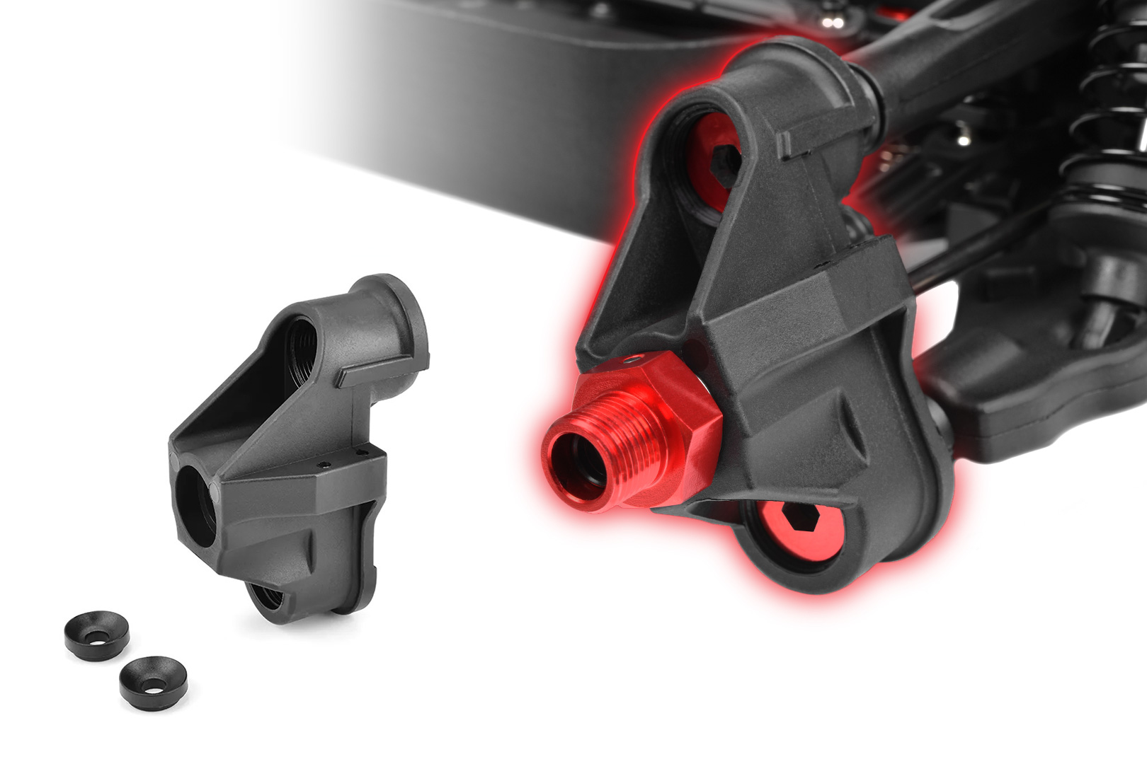 • Oil-filled threaded 16 mm plastic Big Bore shocks